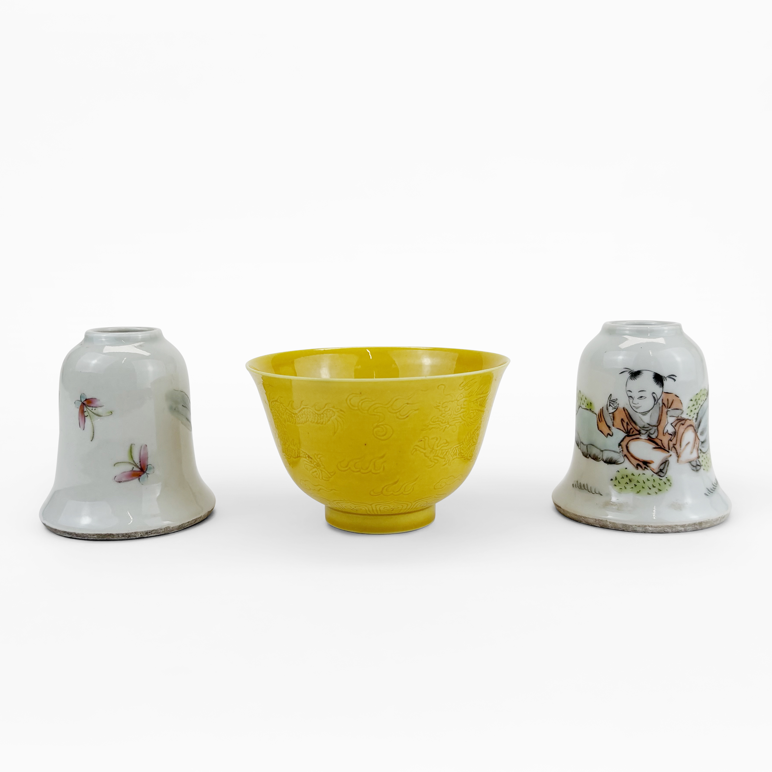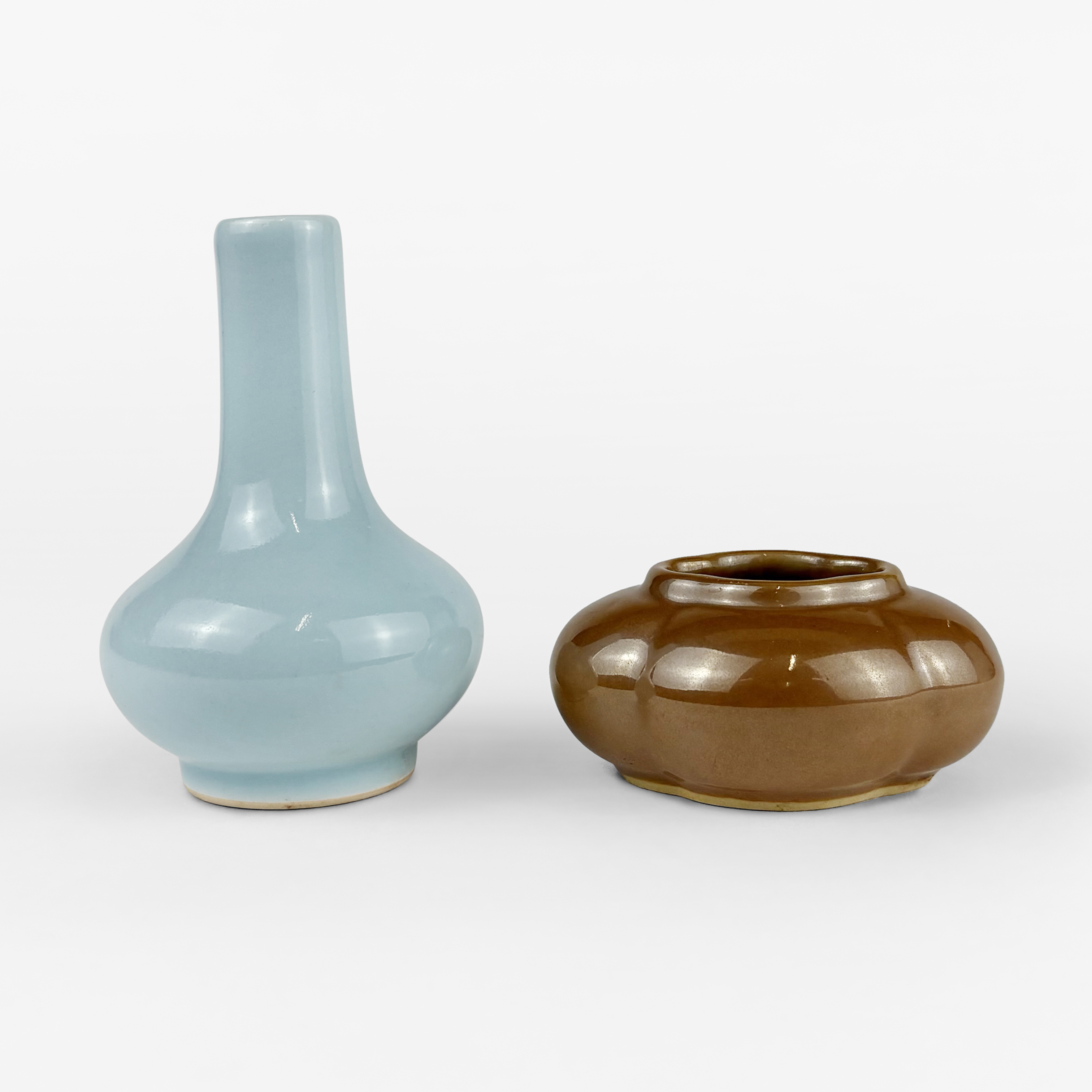 5246. Paire de petits pots à eau et un petit bol monochrome, Chine, XX...