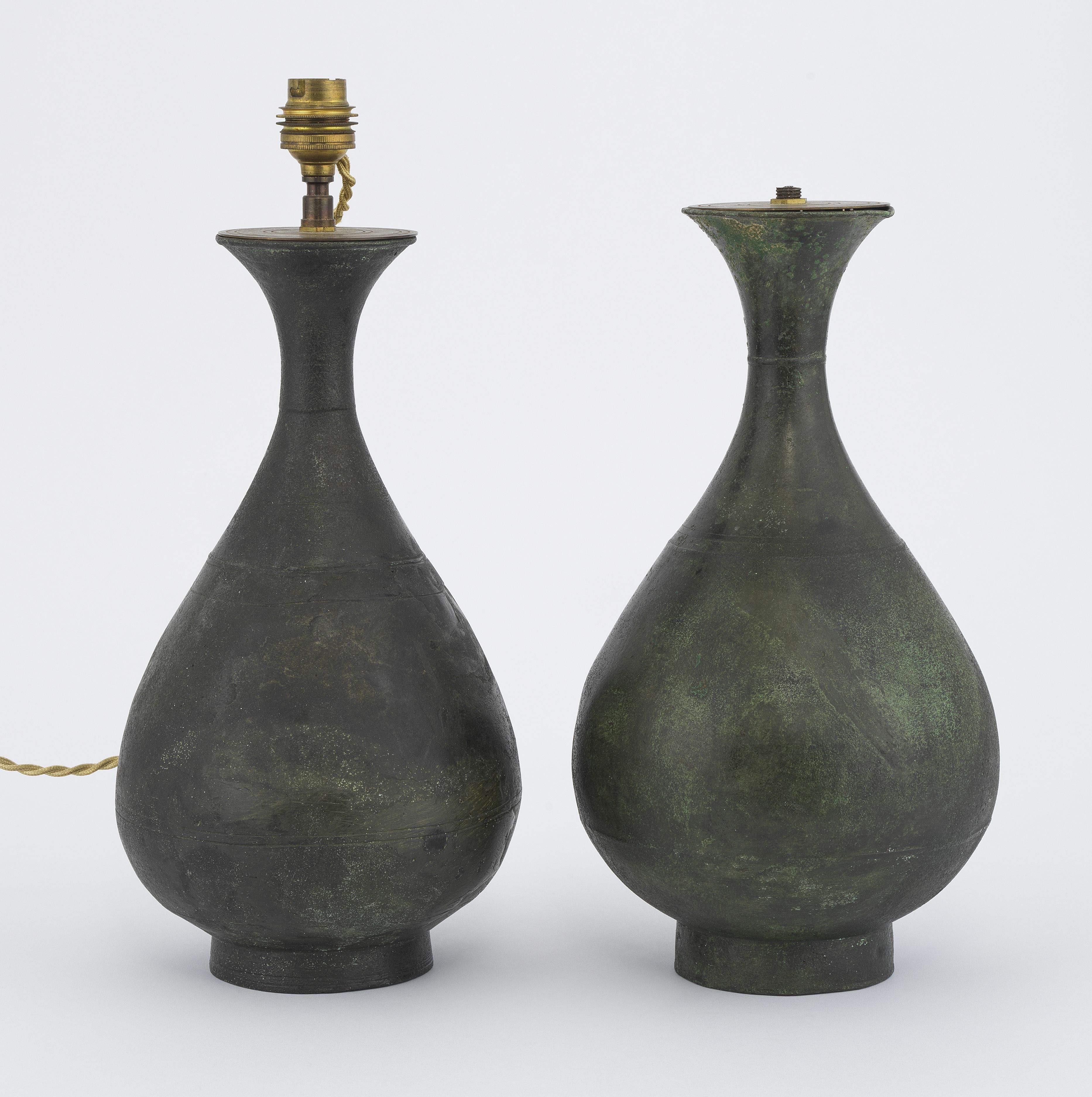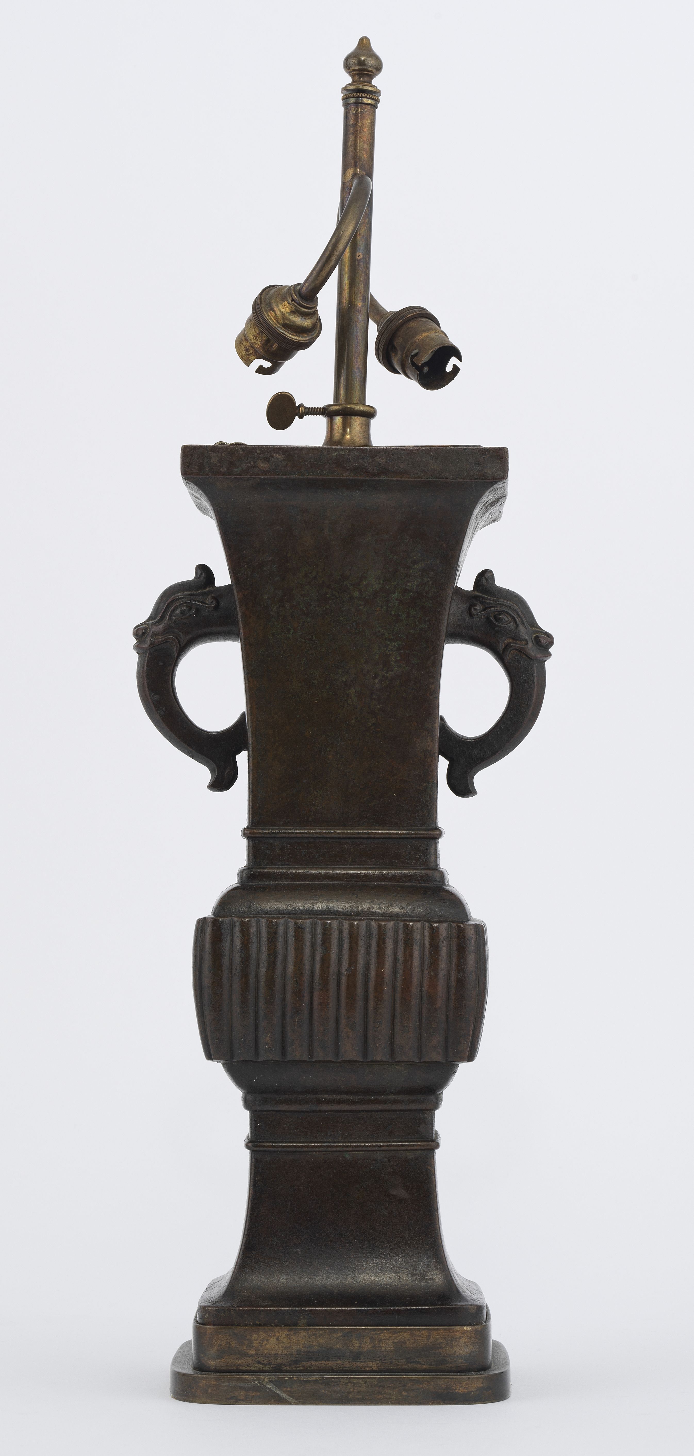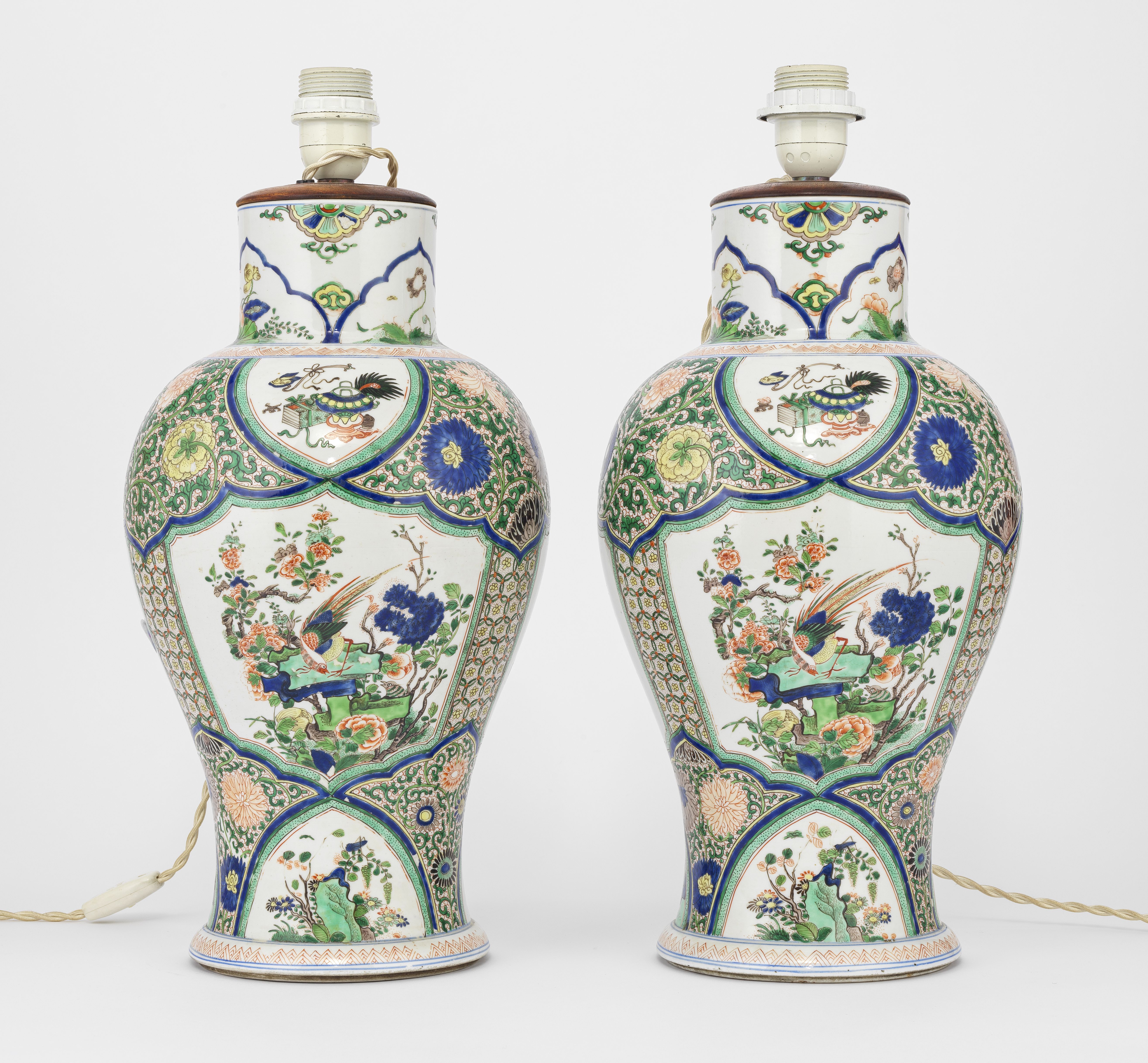 5255. Paire de vases balustres montés en lampe, famille verte, dynasti...