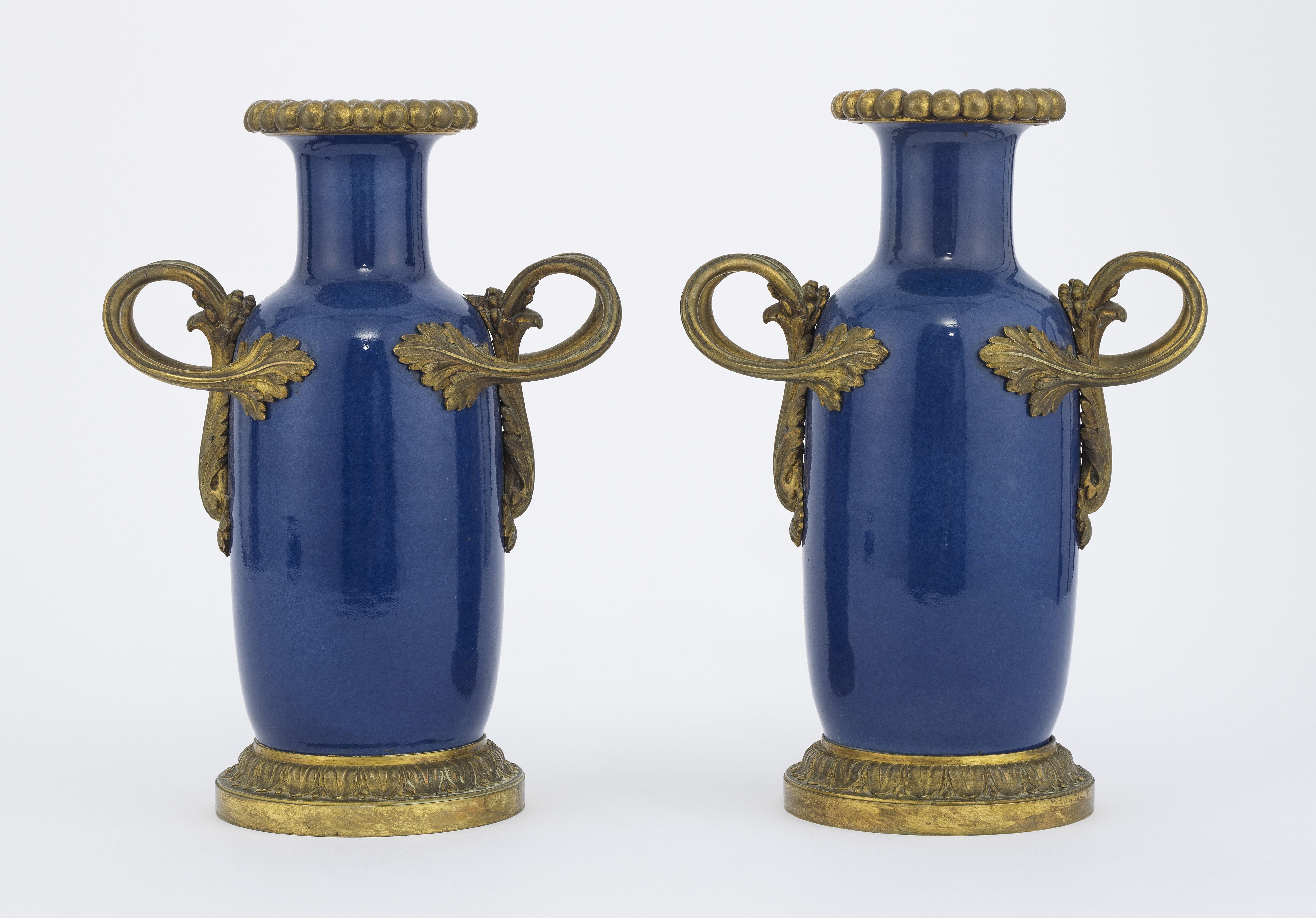 5242. Paire de vases monochromes bleus, Samson, XIXe s, dans le goût d...