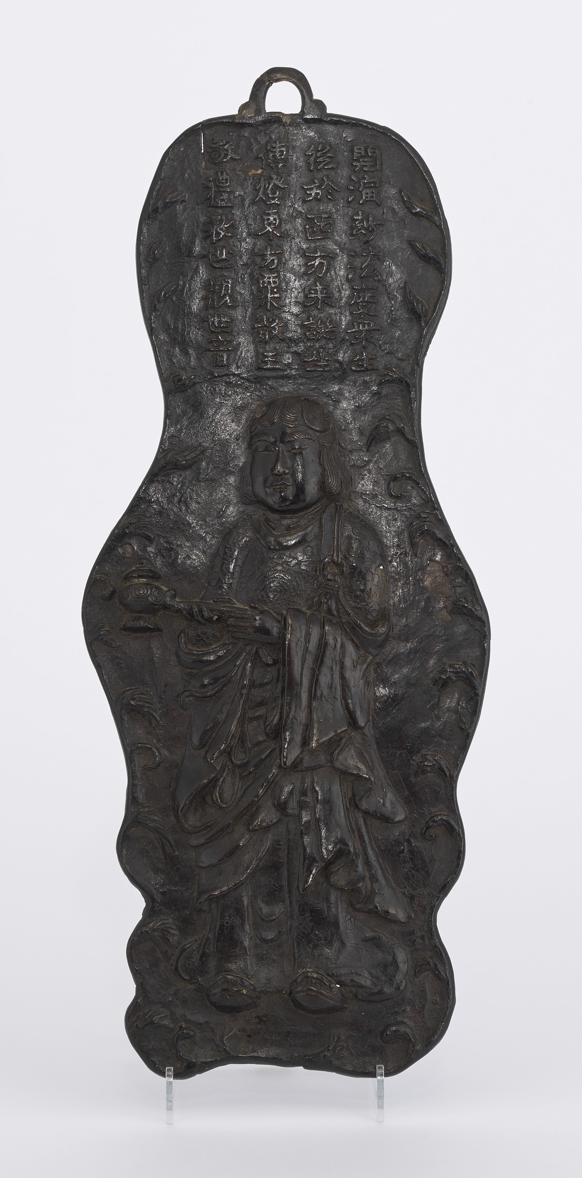 Bronze à patine brune et orné d'un texte, 39x16 cm