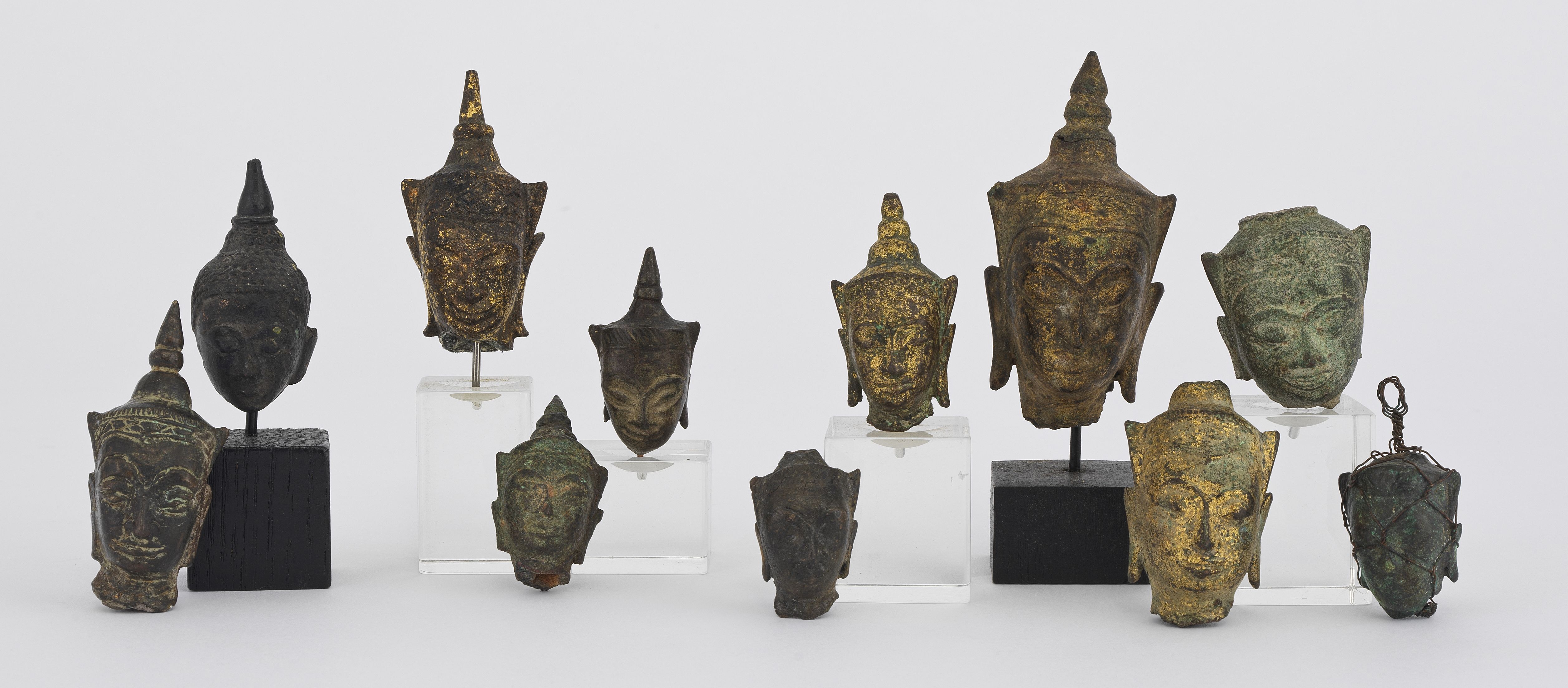 5305. Suite de 11 têtes de Bouddha, Thaïlande, XIXe s