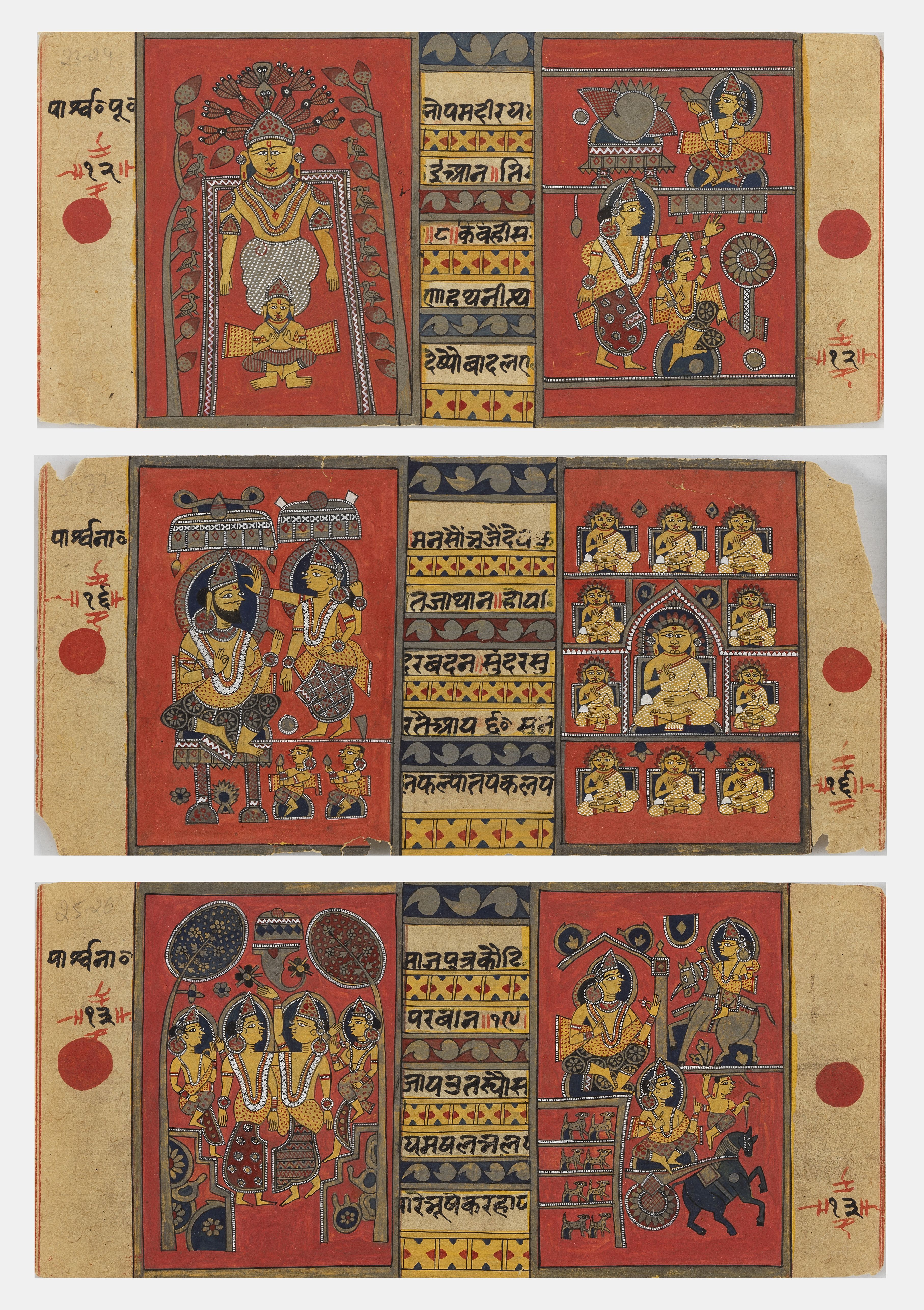 5308. Trois pages de manuscrit, Jaïn, Inde, Gujarat