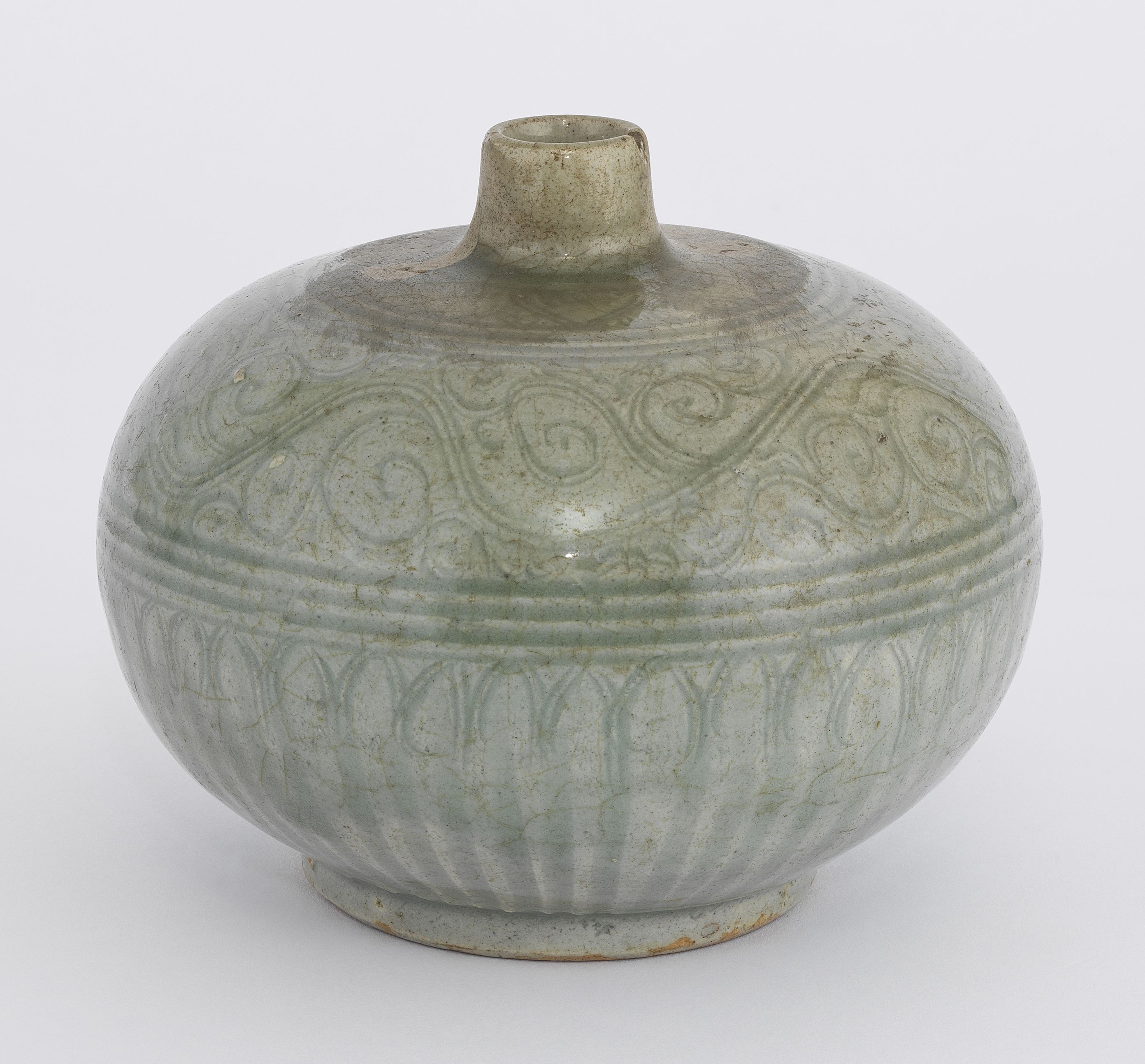 Porcelaine émaillée céladon à motifs incisés sous la couverte, D...