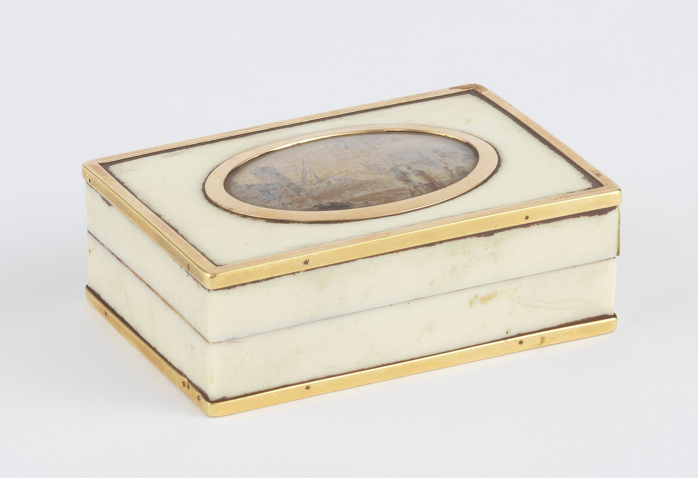 Ivoire et monture en or, surmontée d'une miniature dans le style...