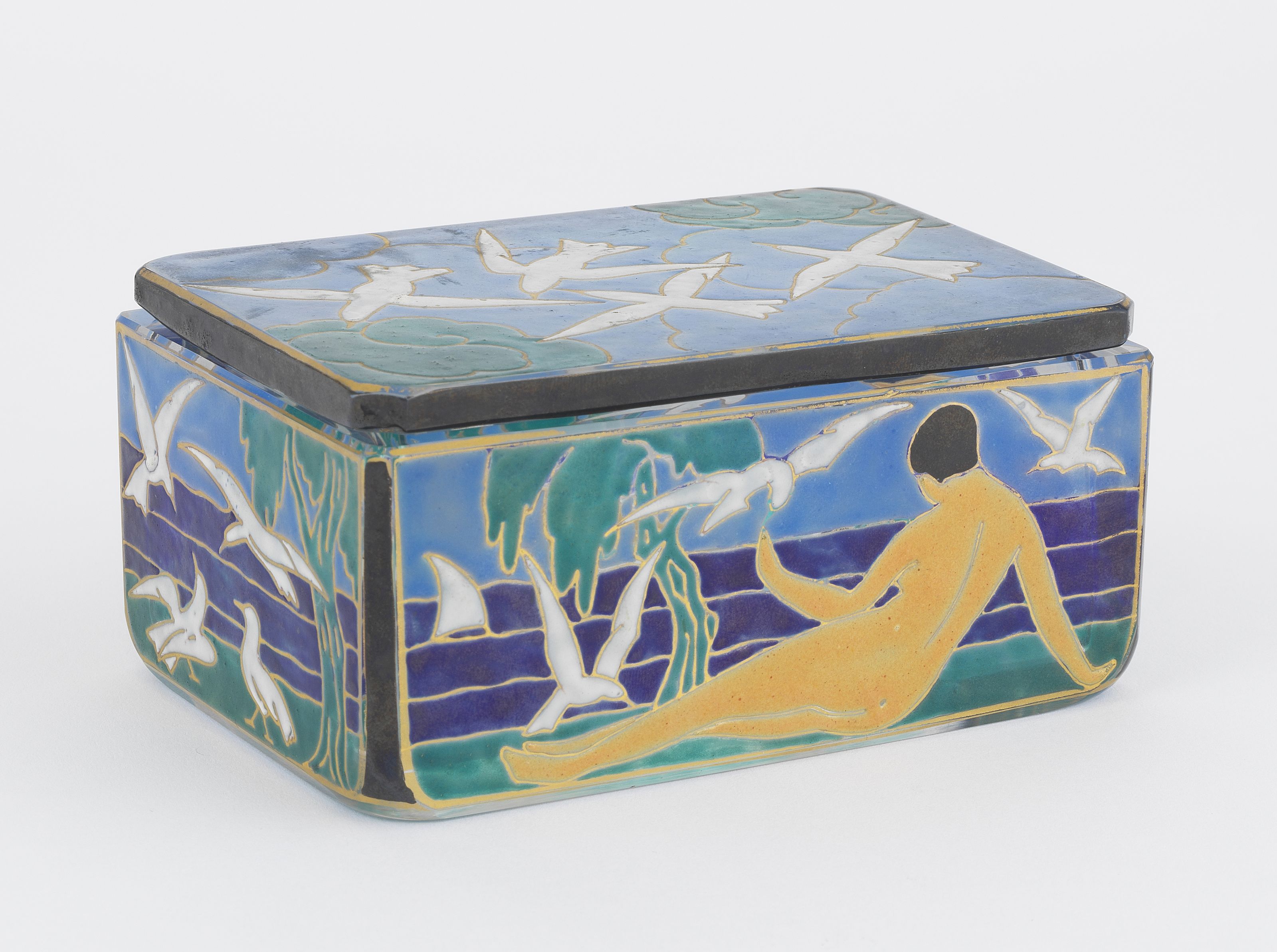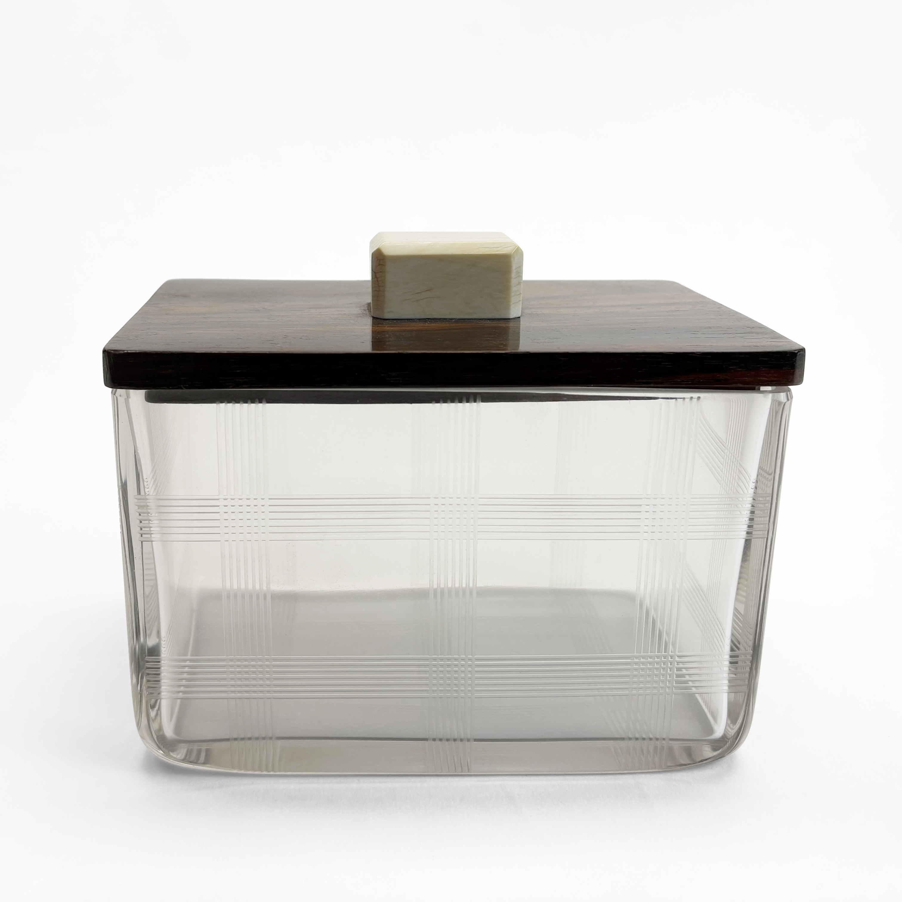 Bonbonnière rectangulaire d'époque Art déco, verre émaillé à mot...
