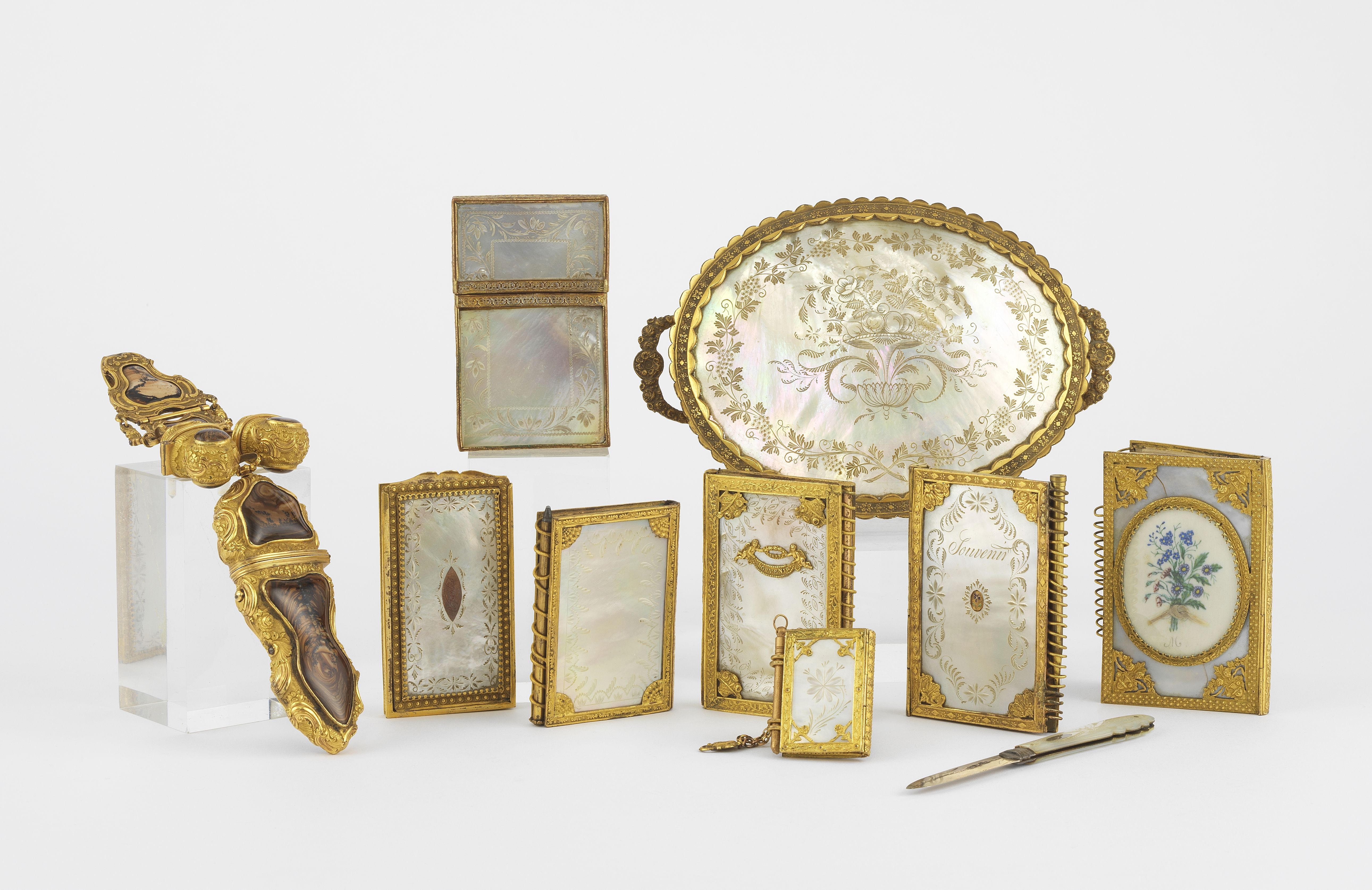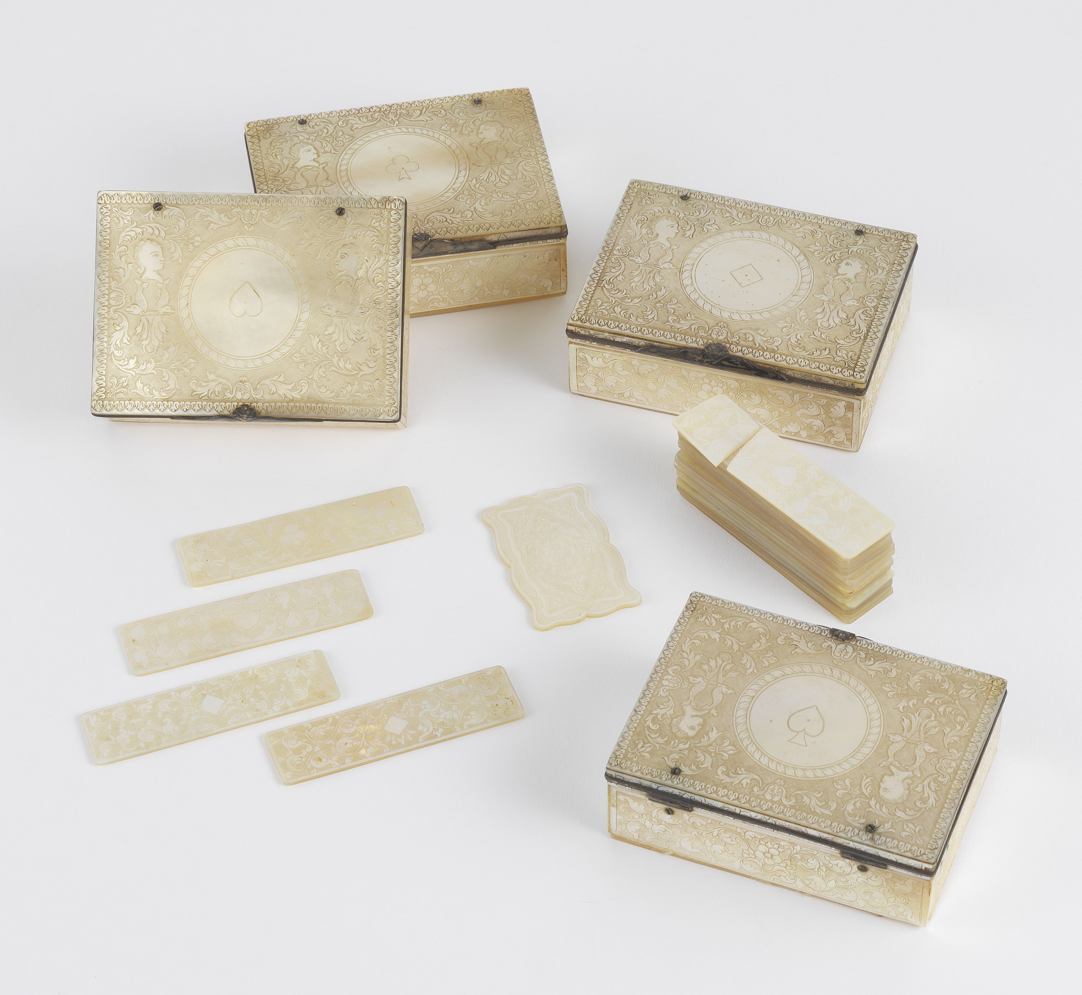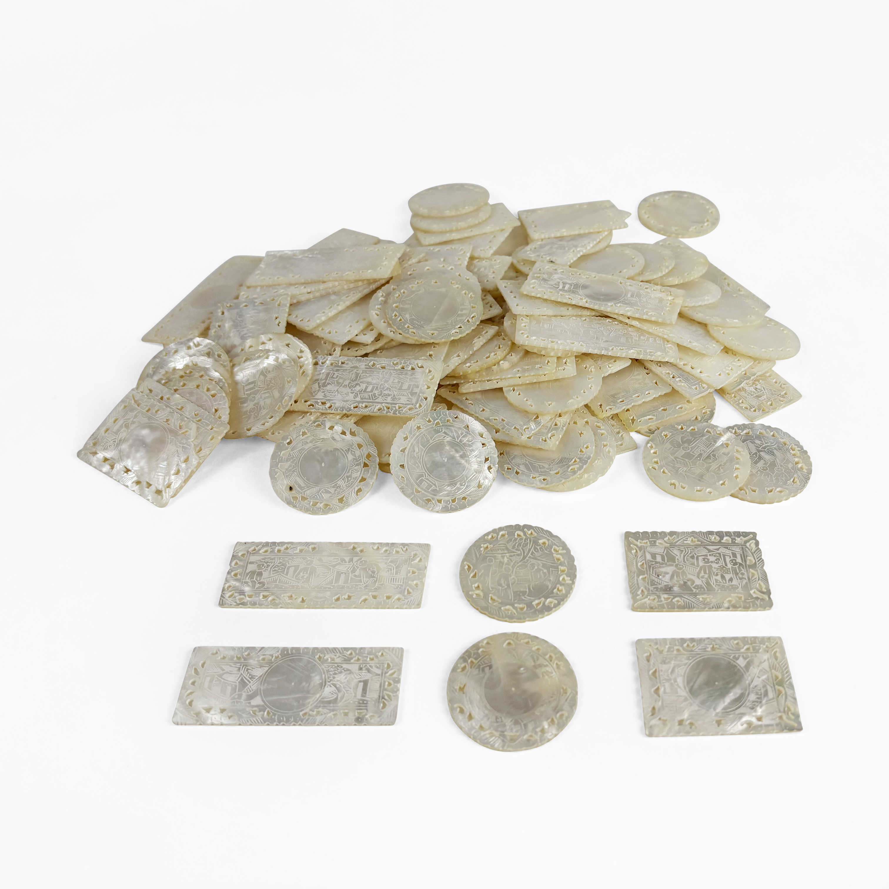 Nacre à décor gravé de scènes, L de 3 à 5,5 cm. Provenance: Les...
