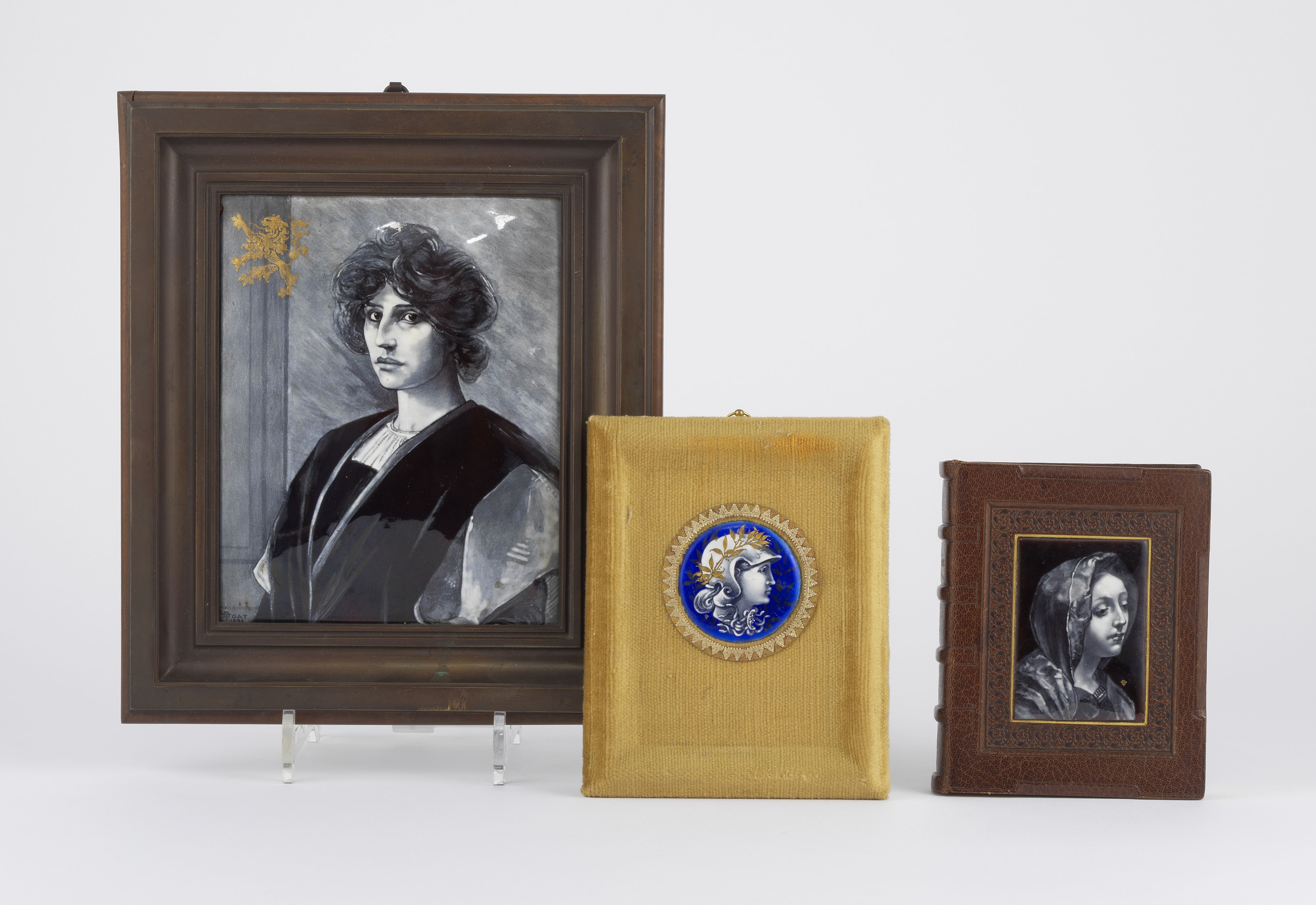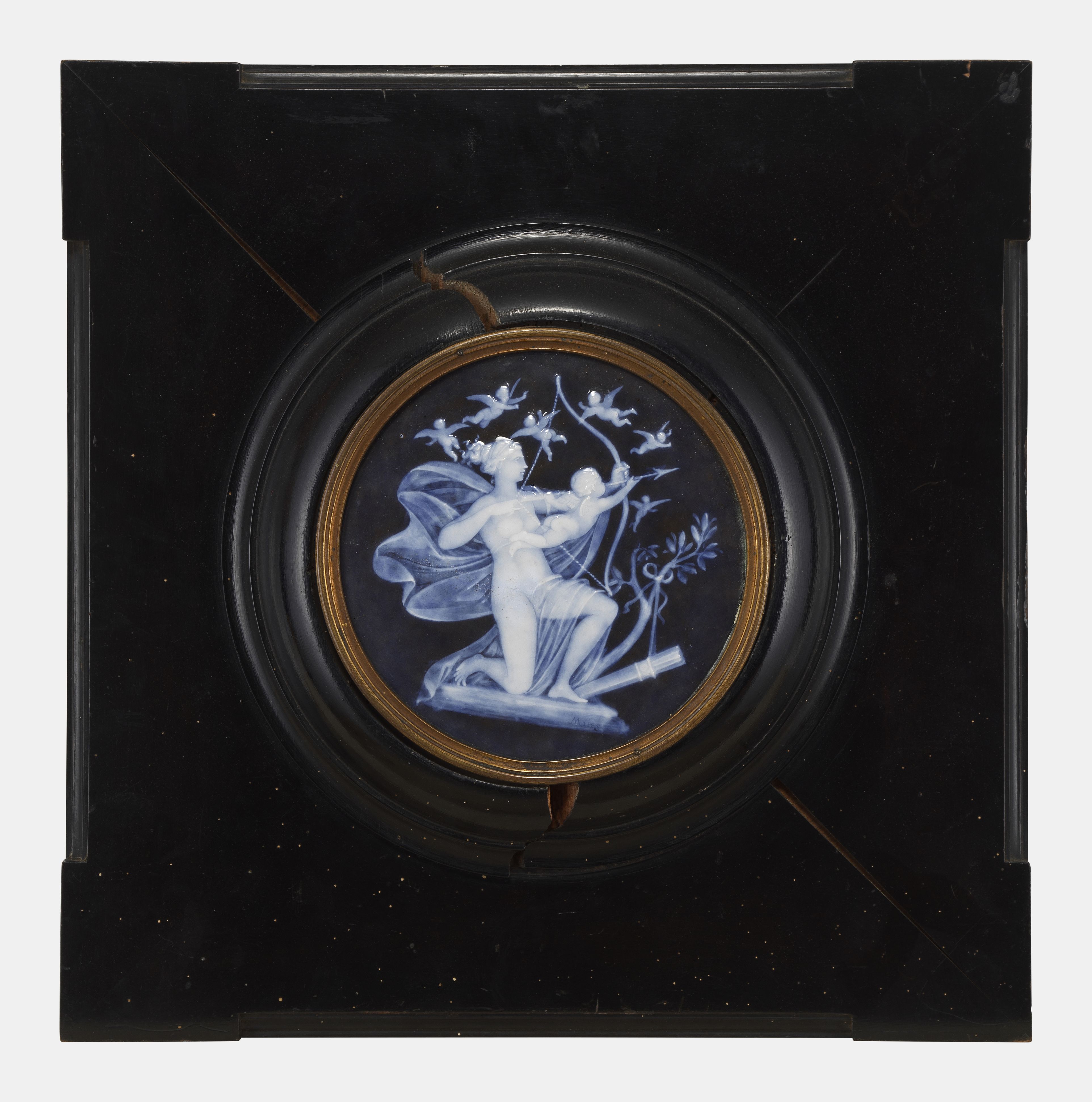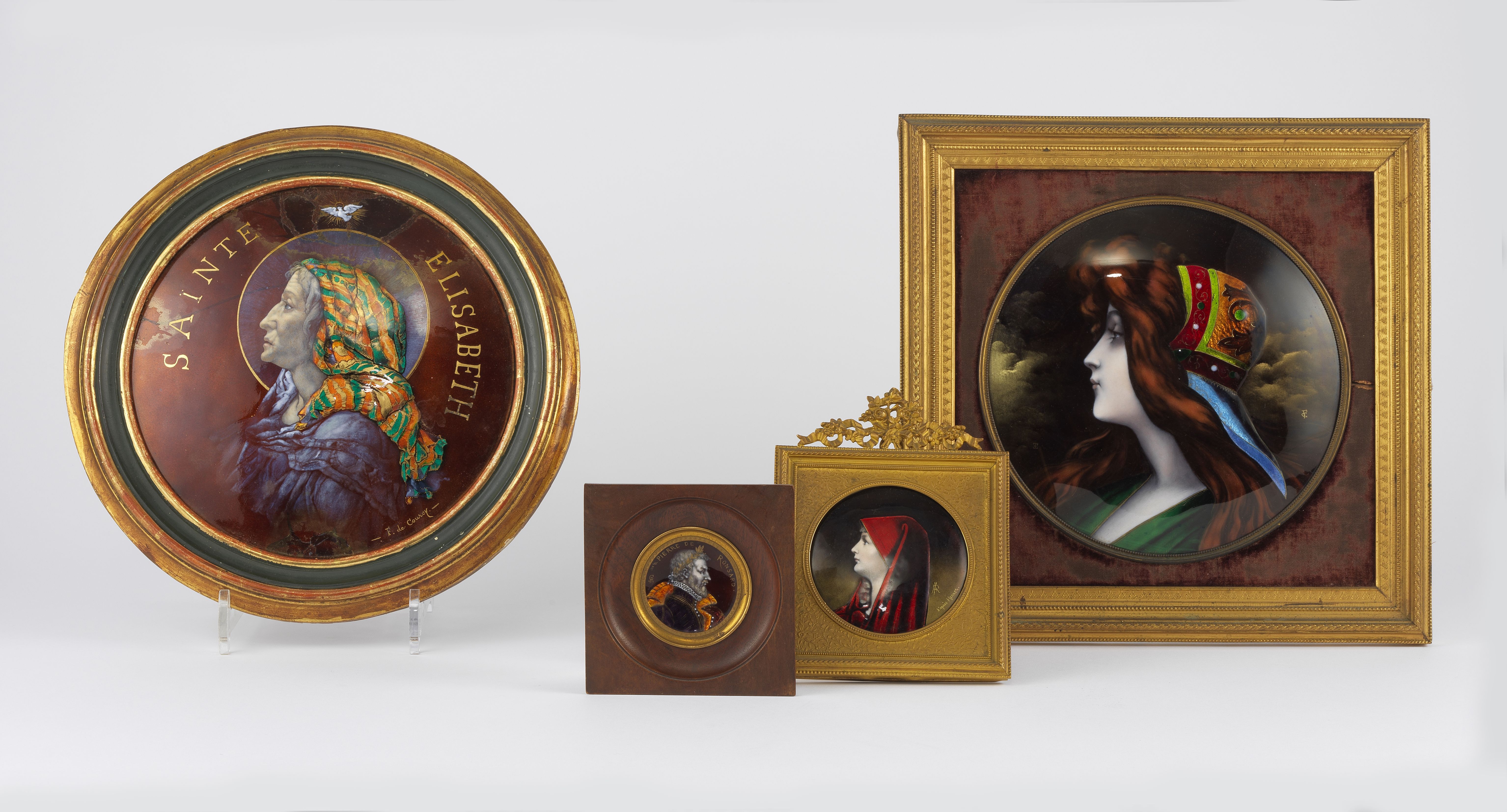 Deux médaillons à motif de femmes dont Fanny Prunaire, pâte de v...