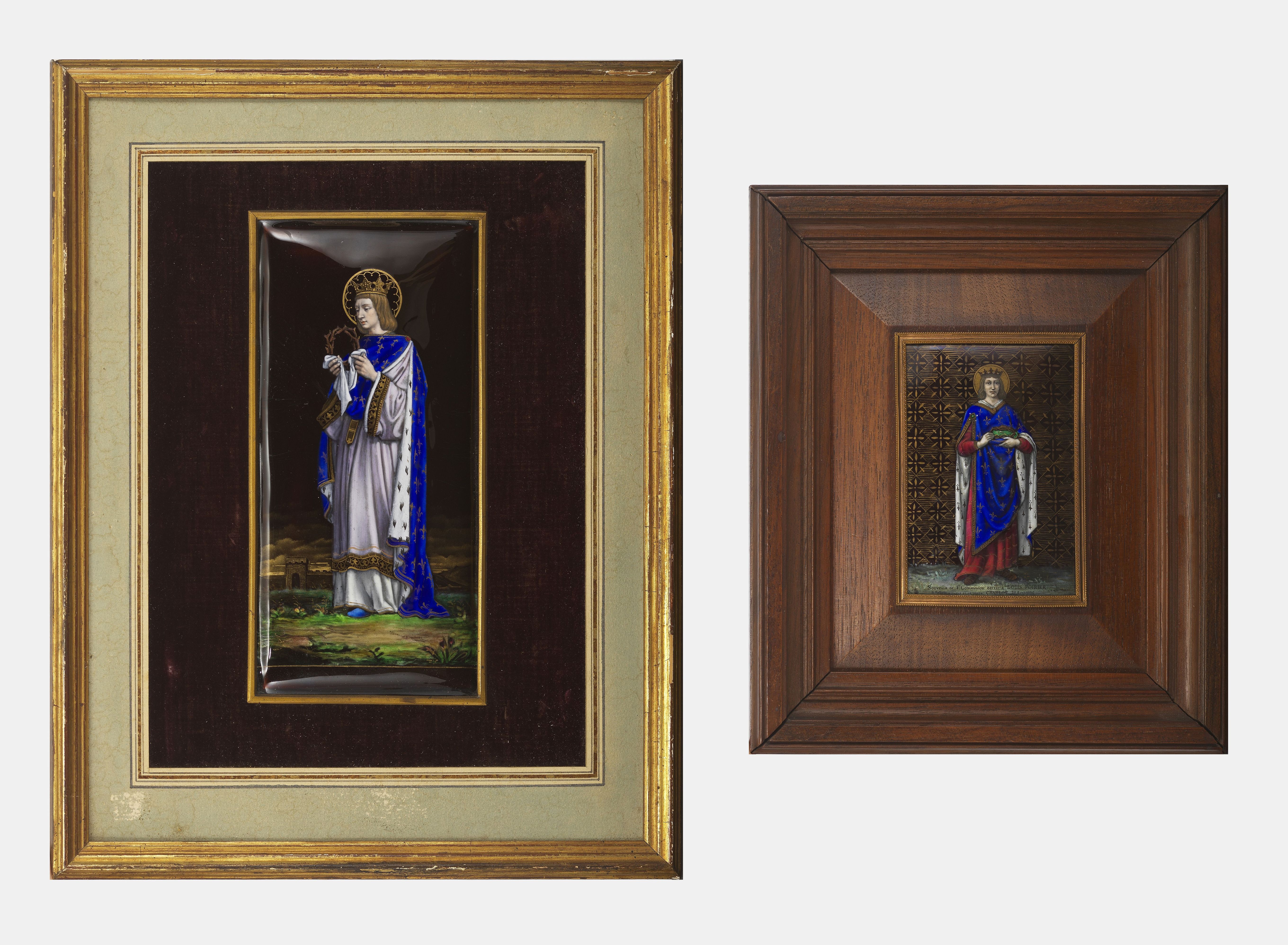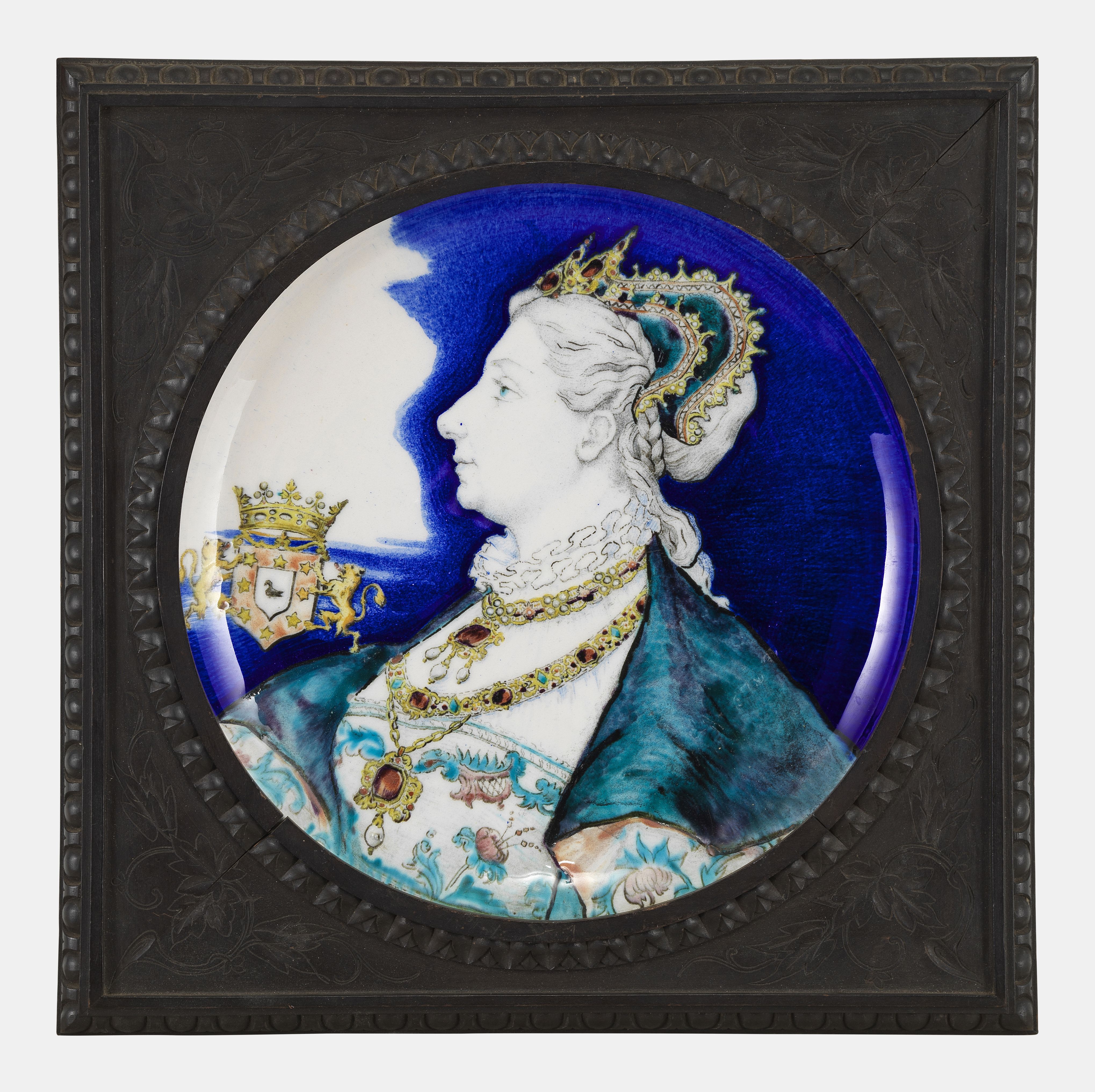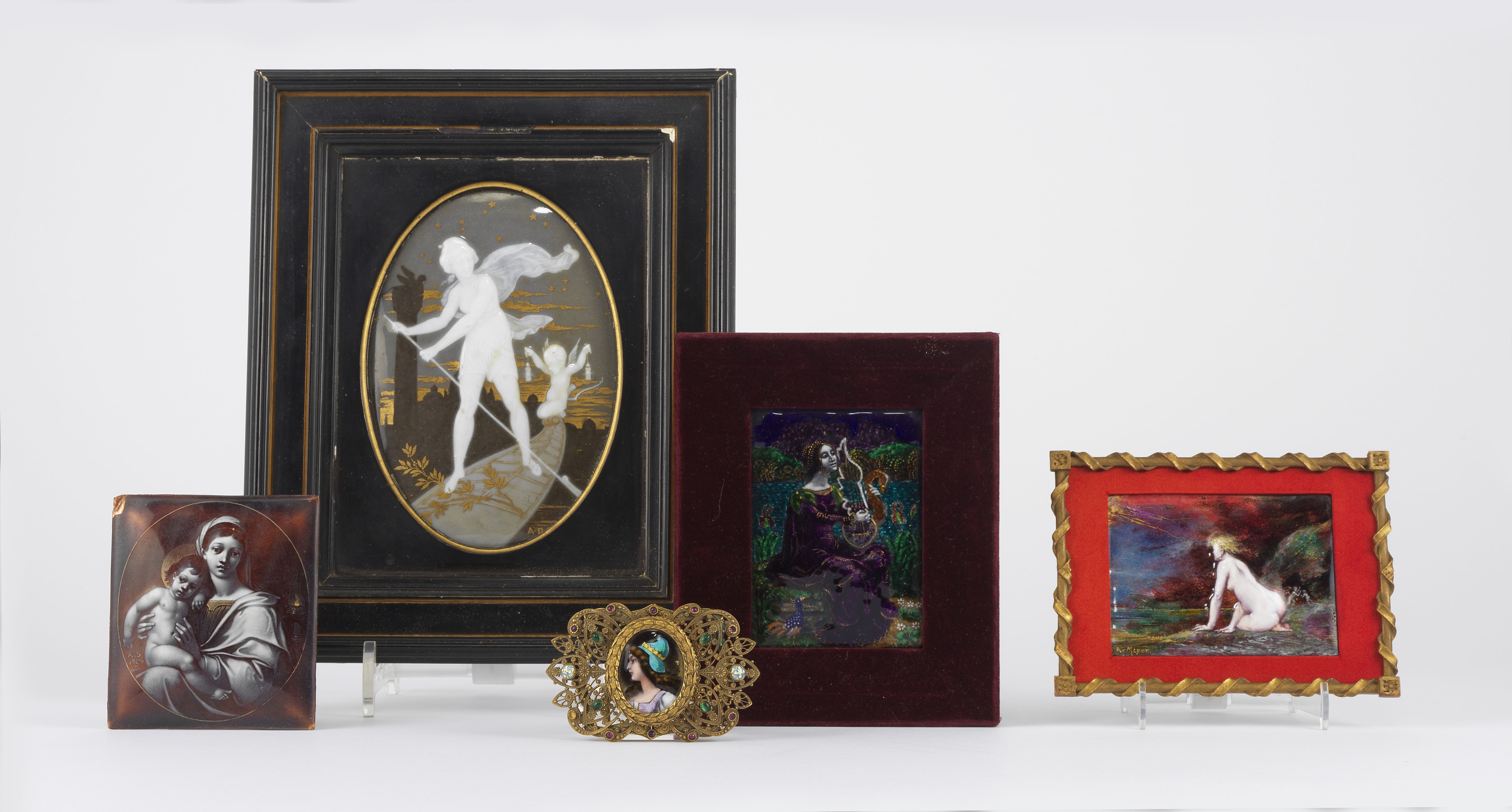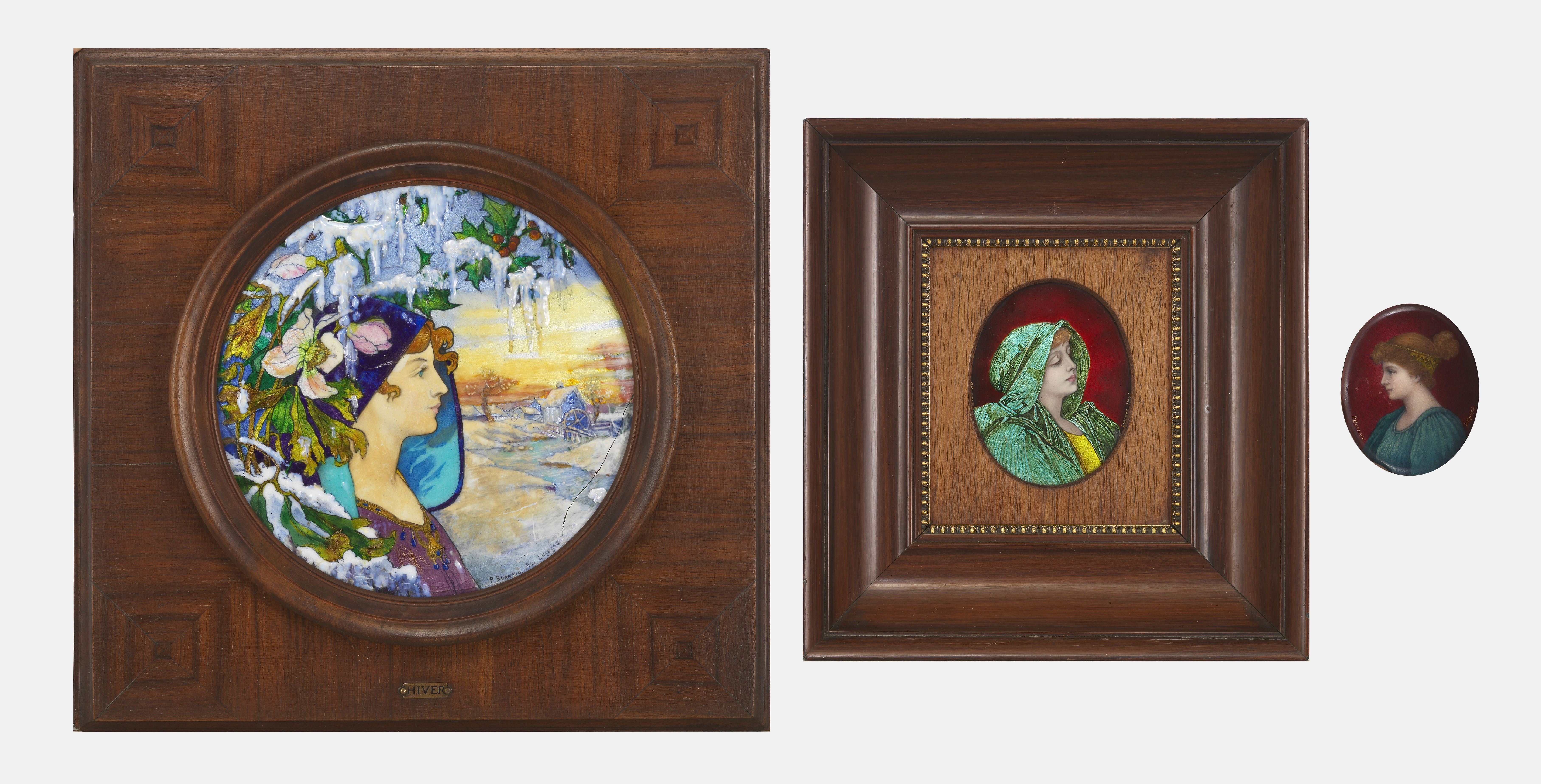 Deux médaillons à motif de femmes dont Fanny Prunaire, pâte de v...