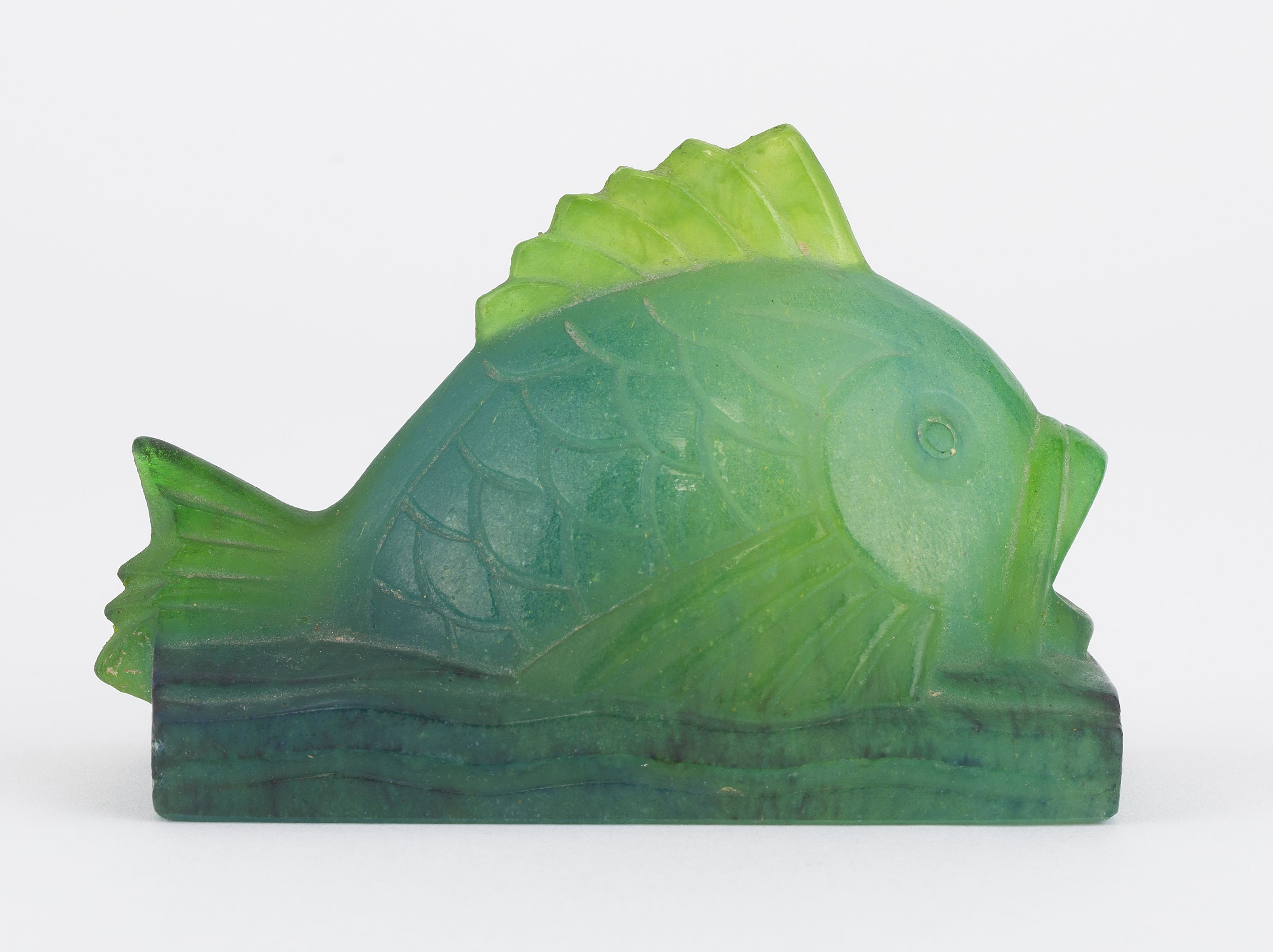 Presse-papier poisson, pâte de verre teintée, L 8 cm. Provenance...