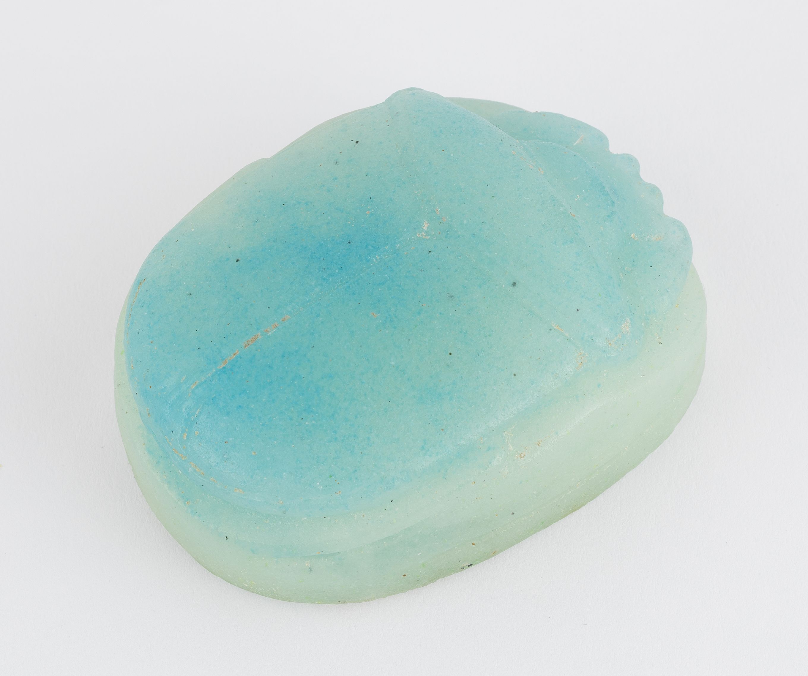 Scarabée en pâte de verre turquoise, L 7 cm. Provenance: Les Ste...