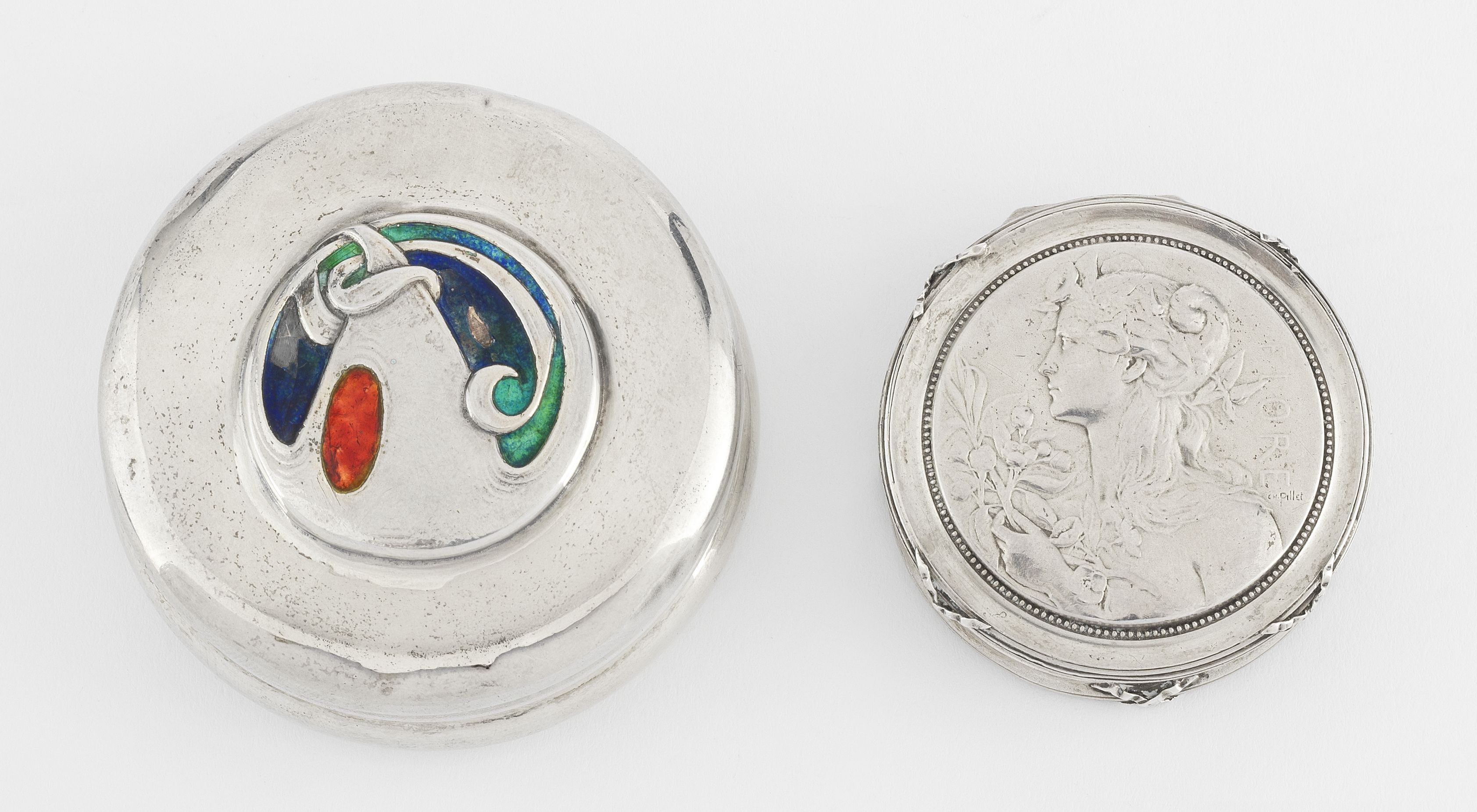 5479. Deux boîtes à pilules à décor de Flore et d'un motif Art nouveau