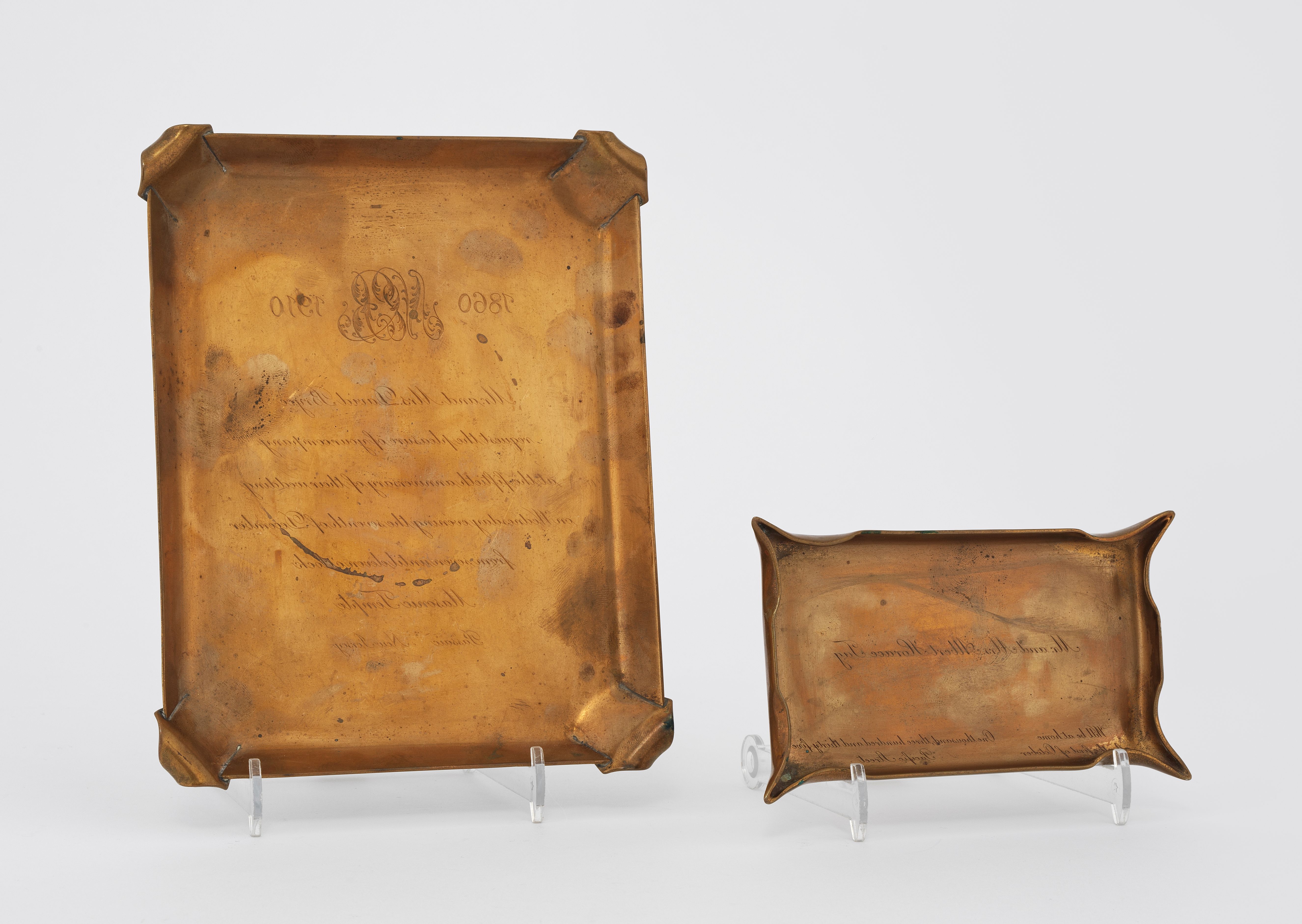 5476. Deux coupelles vide-poche formées de plaques matrice de gravure...