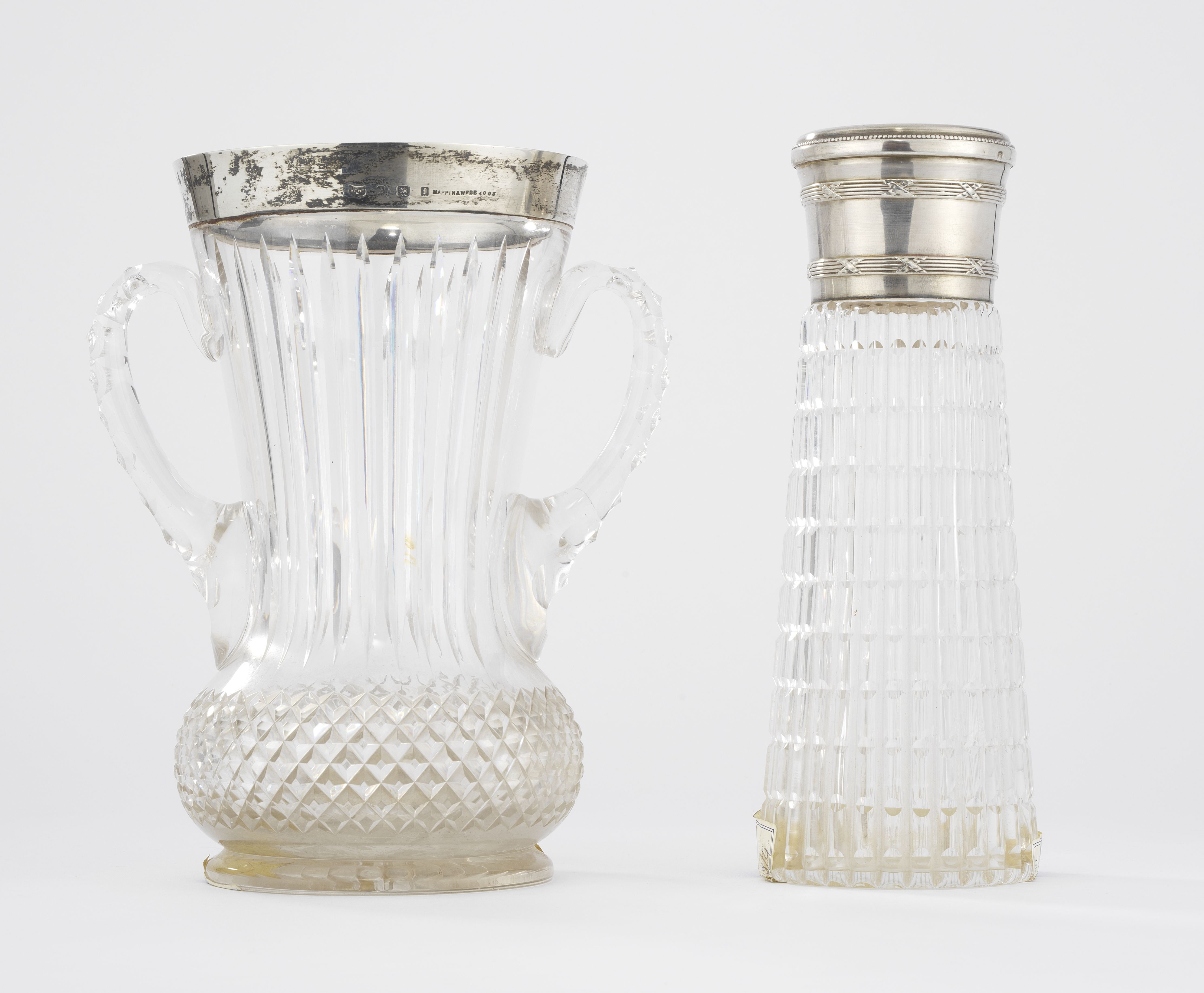 Cristal et col en argent, Paris et Birmingham, H 23,5 et 22,5 cm...