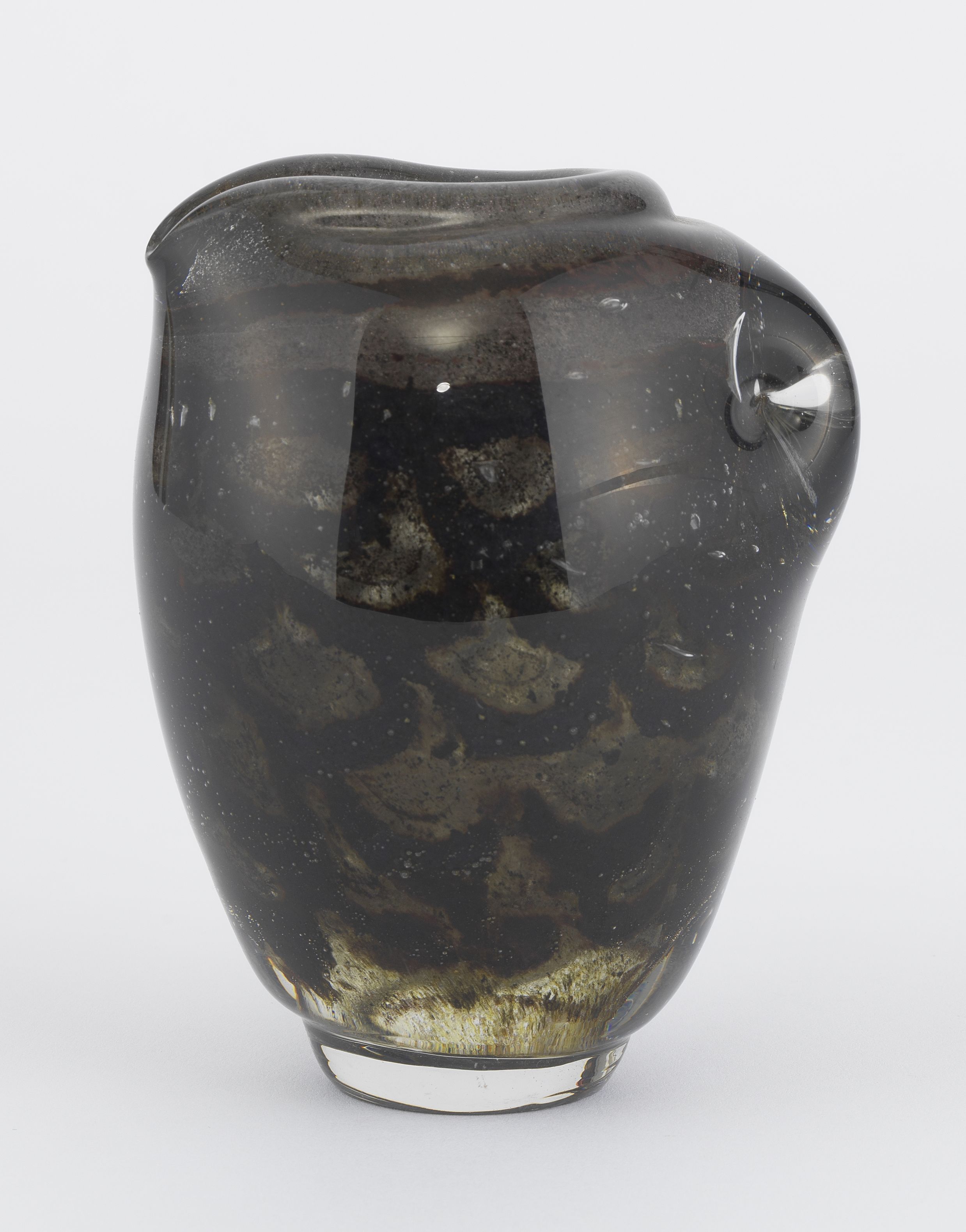 Vase à col pincé, verre soufflé à motif d'écailles, signé, H 11...