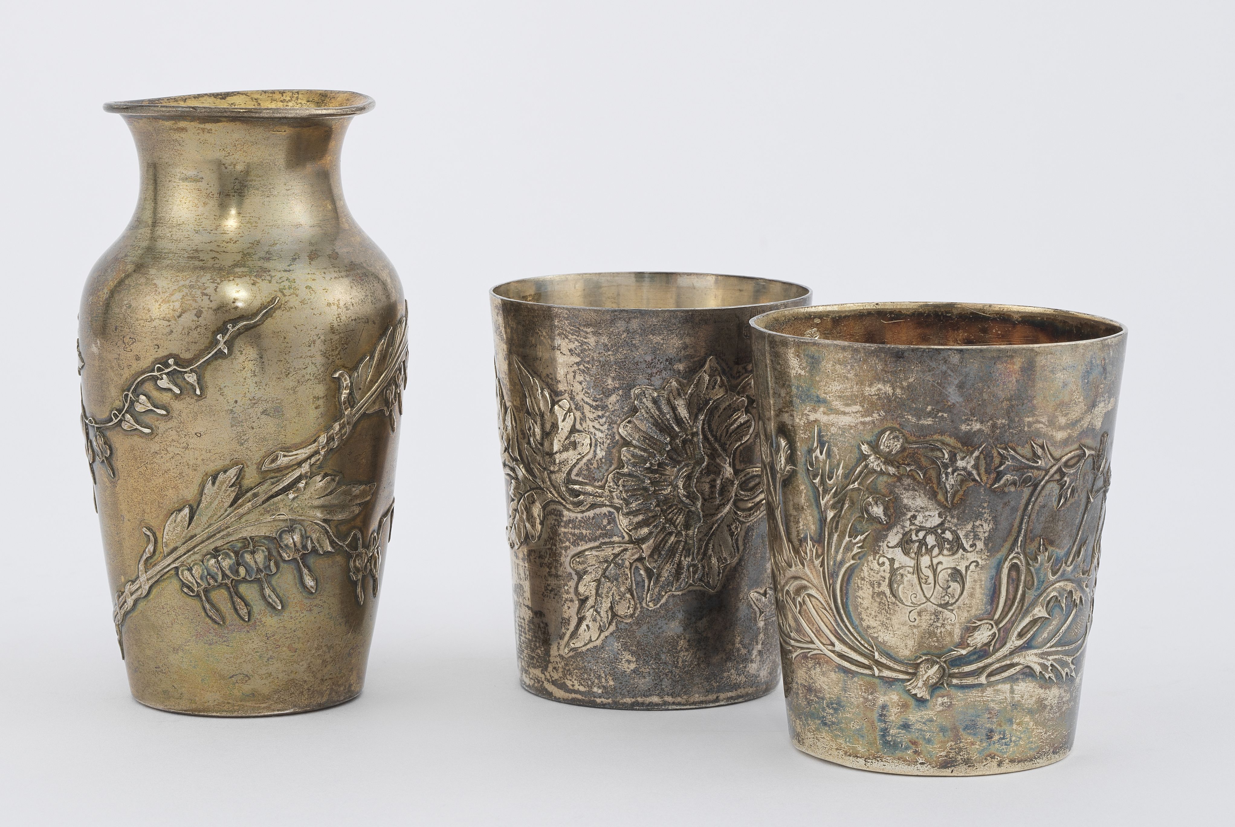 5449. Paire de timbales et vase Art Nouveau à décor de végétaux