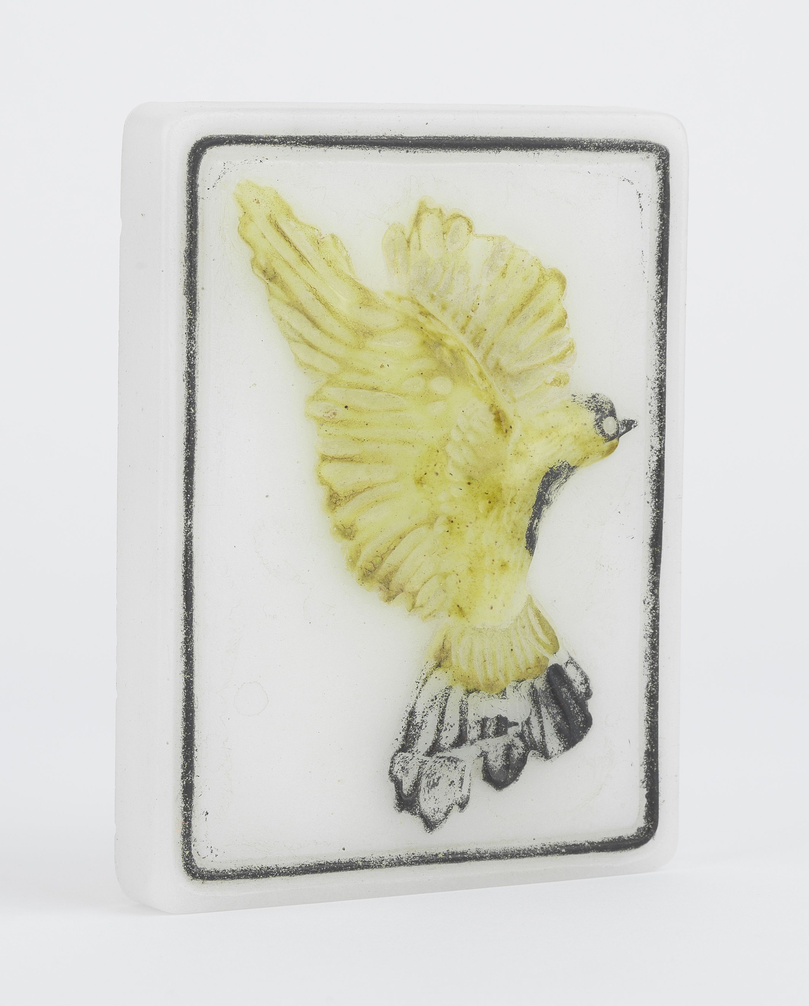 Pâte de verre à décor en relief d'un colibri, 12x9 cm. Provenanc...