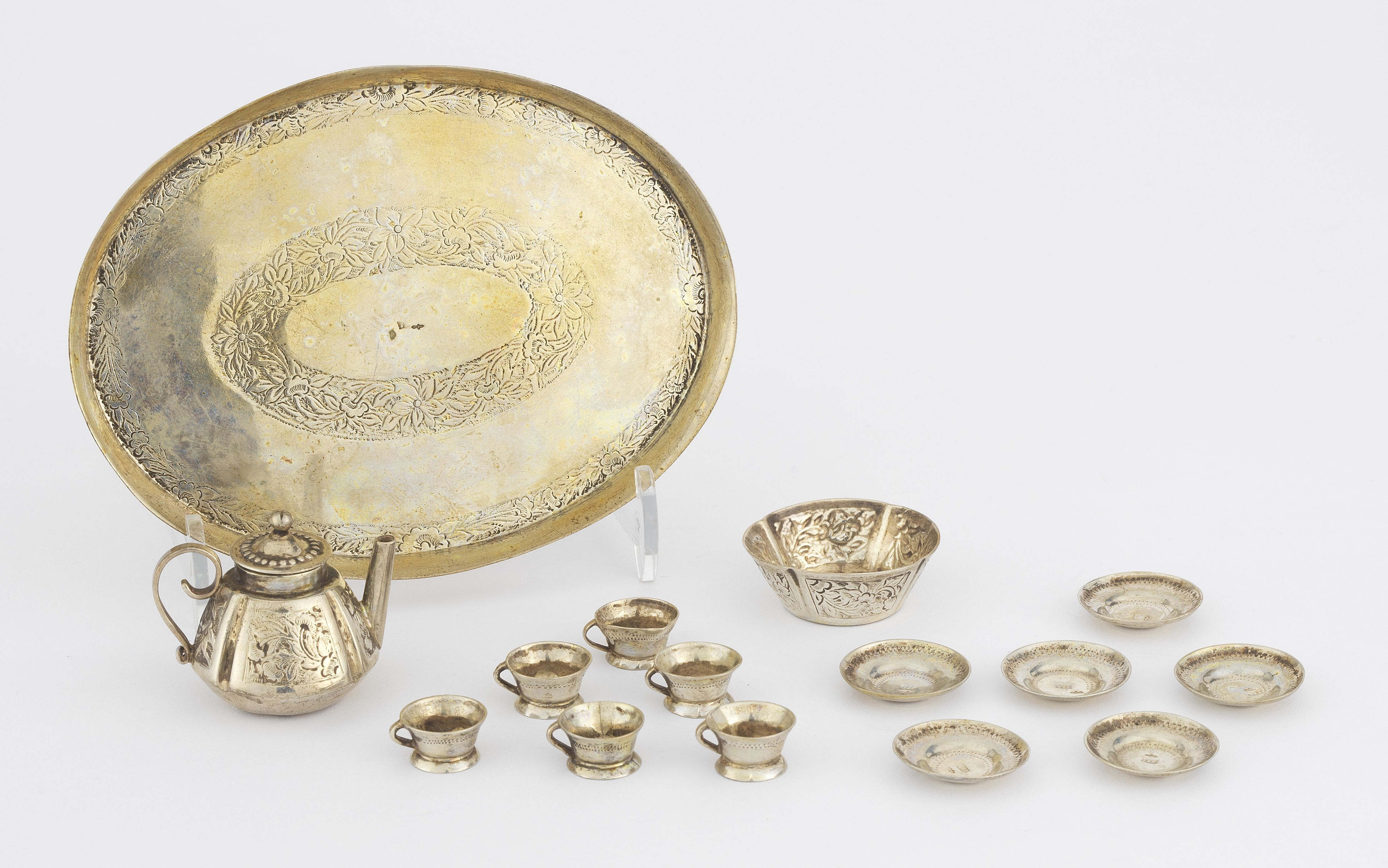 Probablement Belgique, argent, comprenant: théière, bol, 6 tasse...