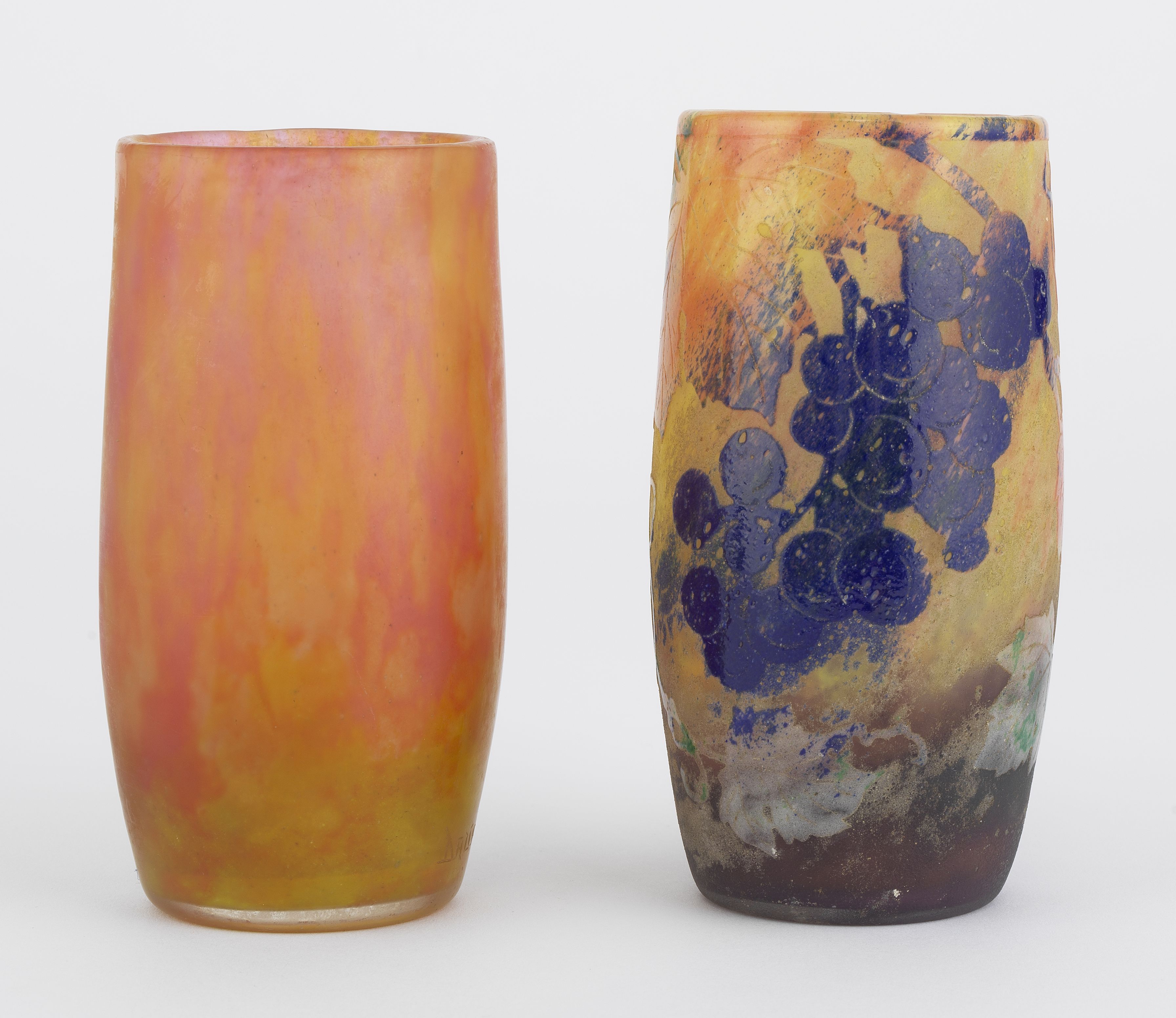 5514. Suite de deux vases cylindriques signés Daum, Nancy