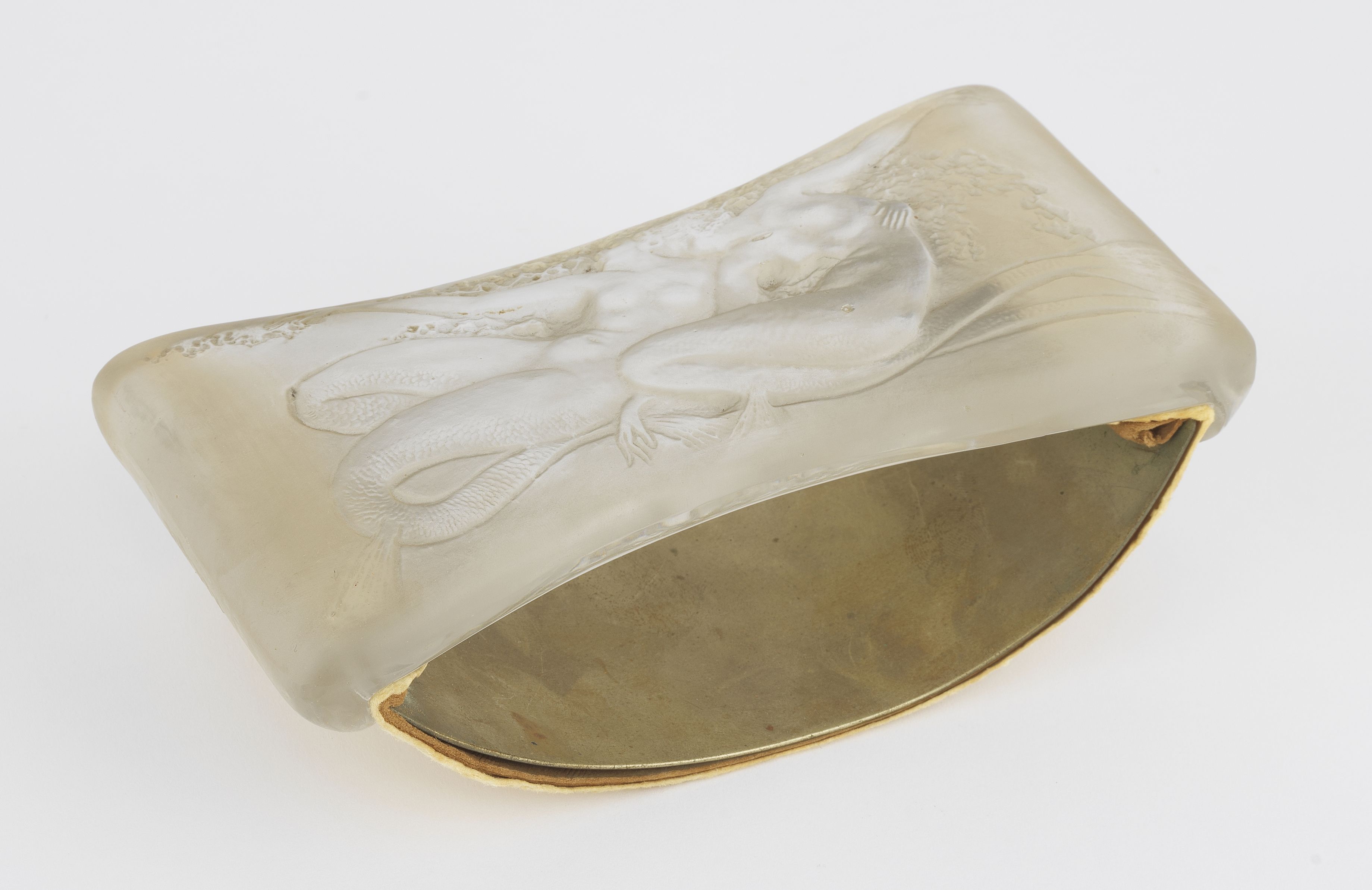 Verre moulé à décor de personnages et sirènes, L 17 cm. Provenan...