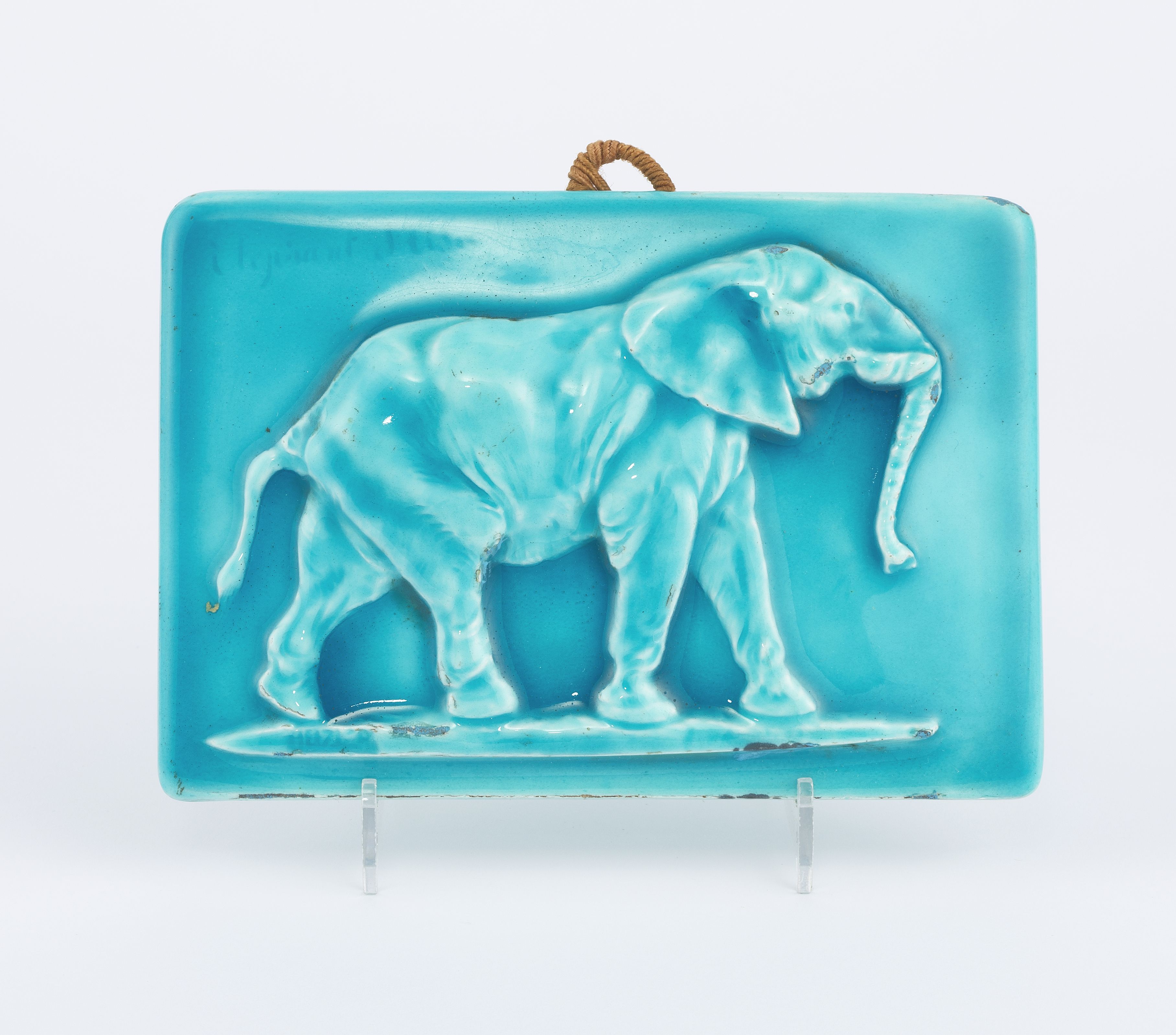 Plaque rectangulaire à décor de l'éléphant Susie, 11x16 cm. Prov...