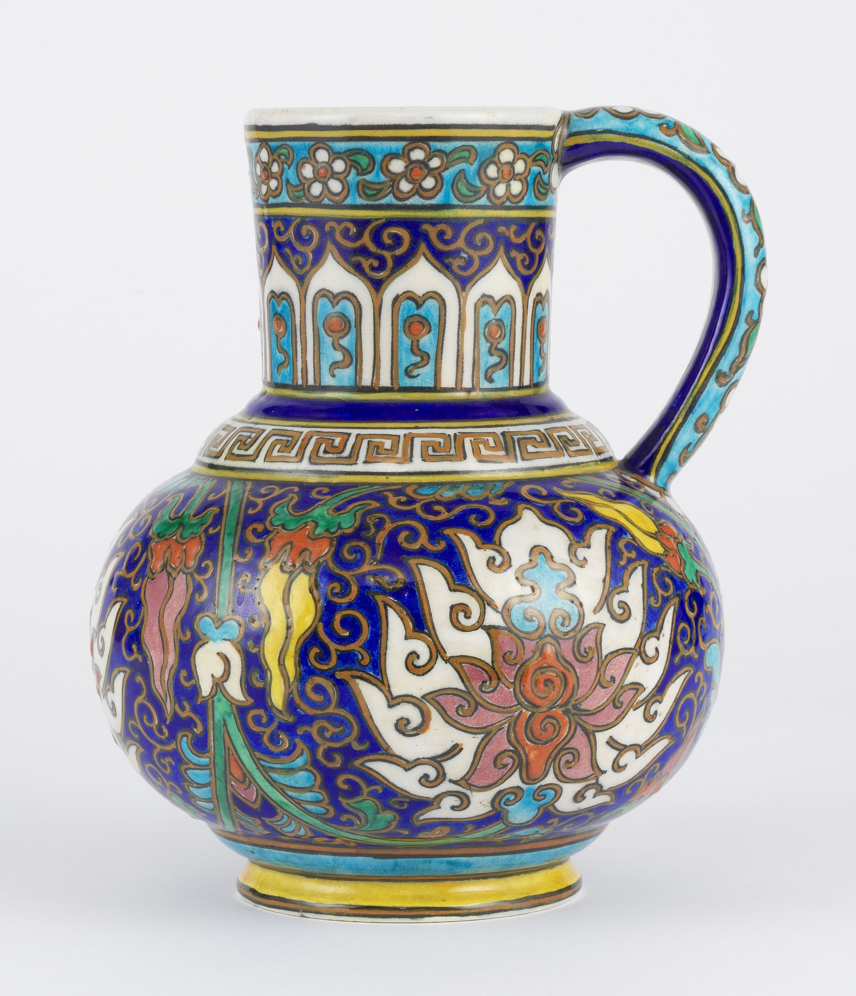 Verseuse de style mauresque, faïence émaillée polychrome, signée...