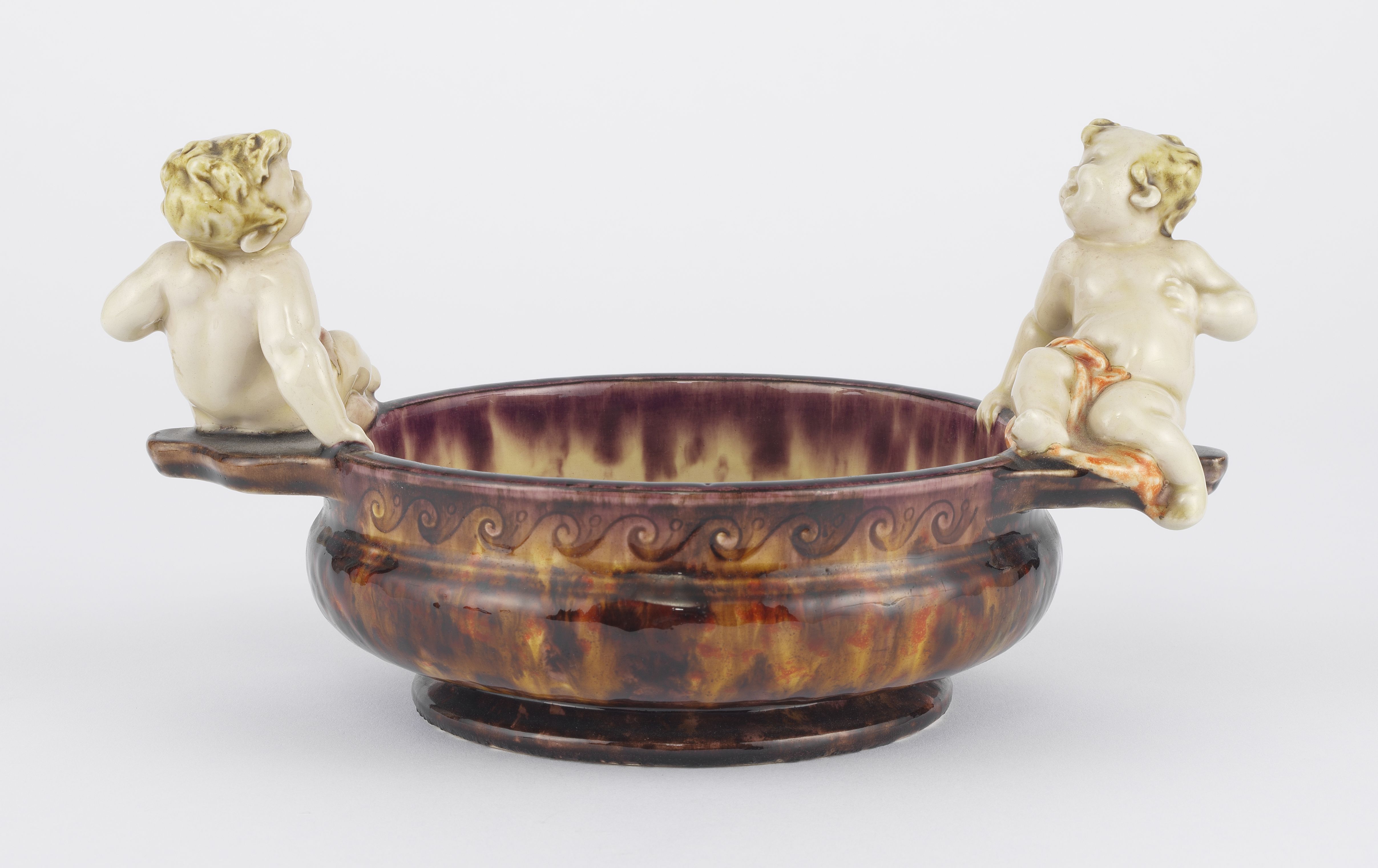 Vide-poche à décor de chérubins, faïence émaillée polychrome à m...