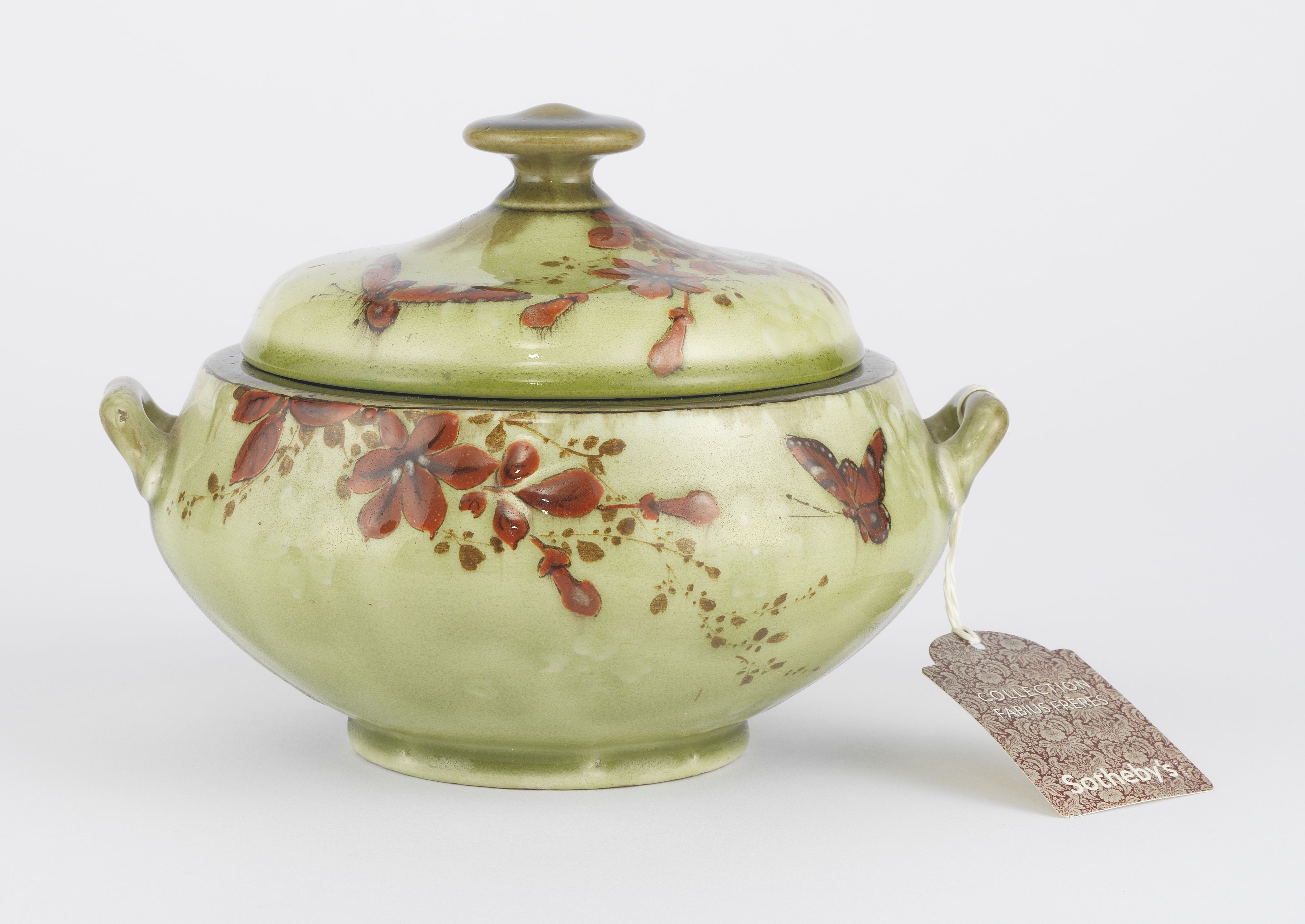 Bonbonnière à motif de papillons et fleurs sur fond céladon, sig...