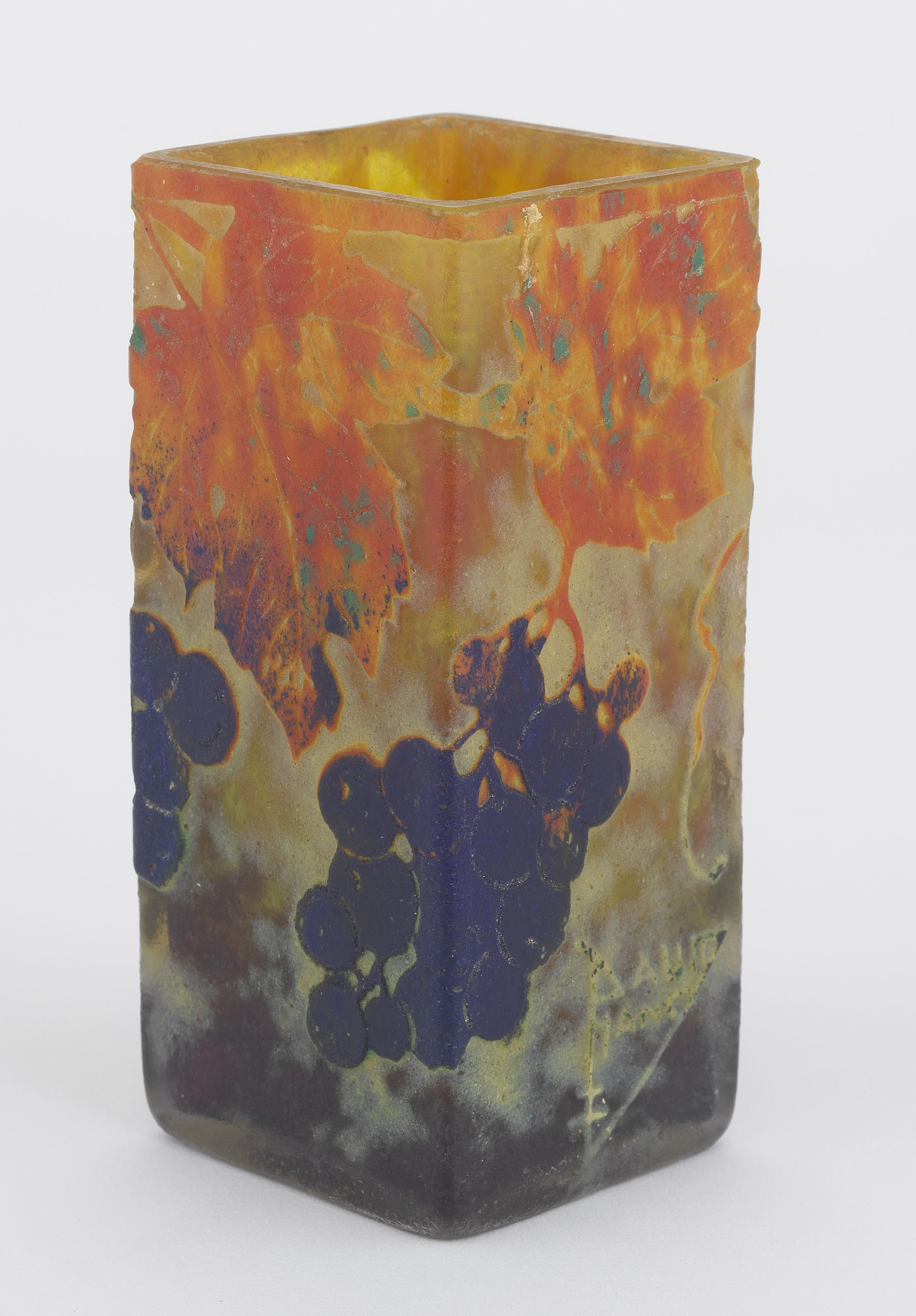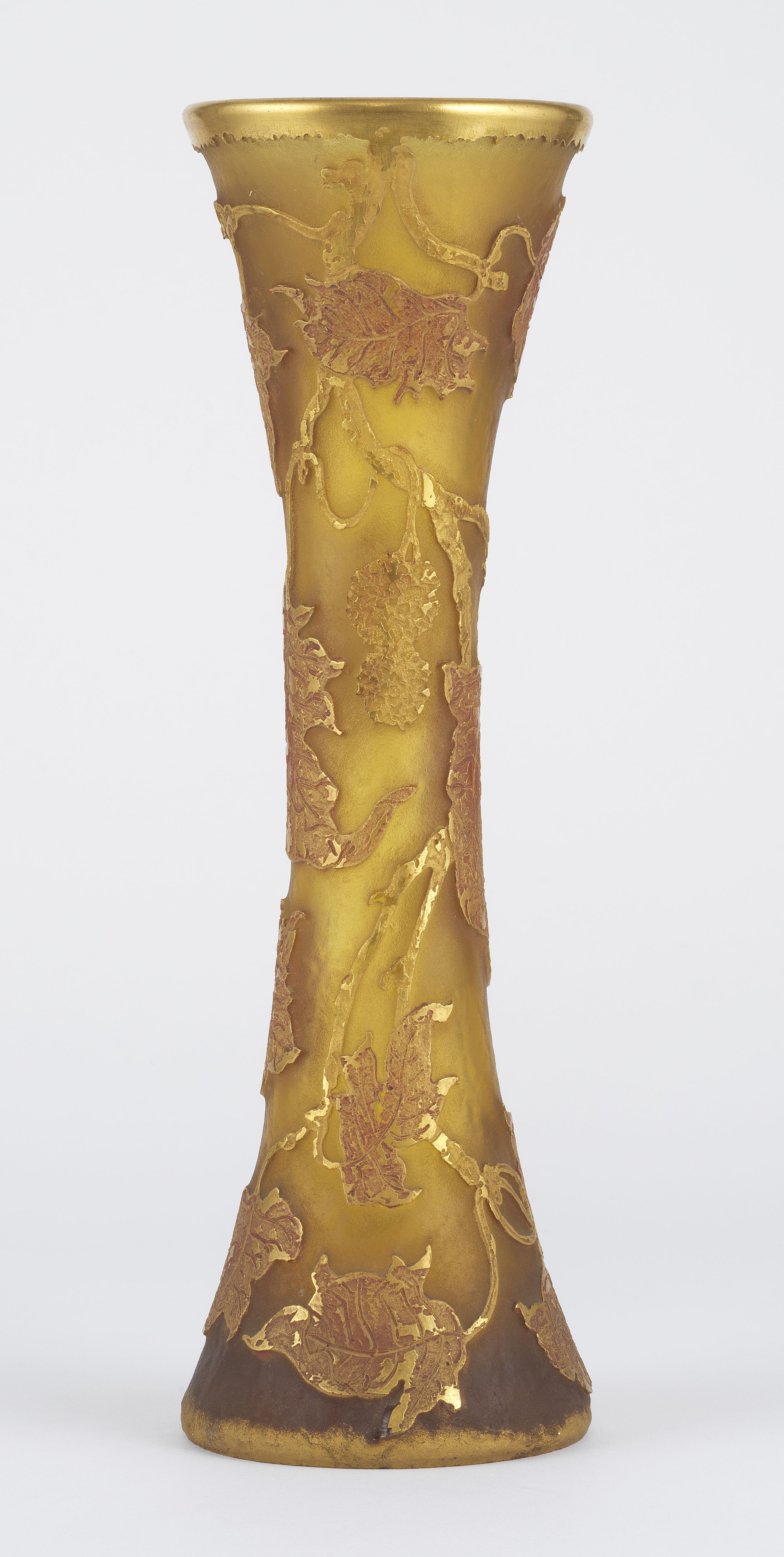 Verre multicouches dégagé à l'acide à décor de vigne, H 12 cm. P...