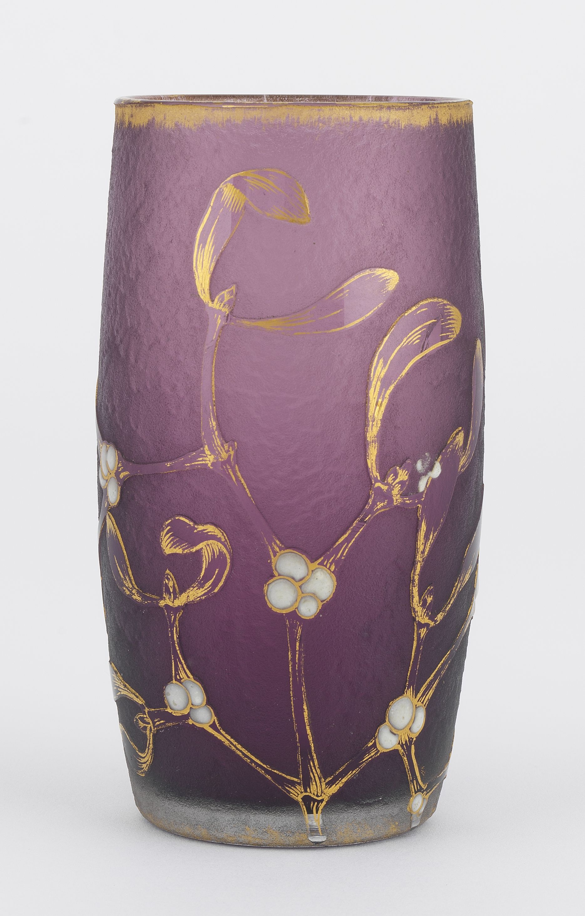 Verre dégagé à l'acide façon givre et à motif doré de gui, H 12...