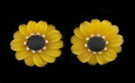 4104. Clips d'oreilles à motif de fleurs de tournesol en pierres dures...