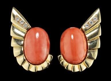 4160. Clips d'oreilles à motifs de grappes de raisin stylisées serties...