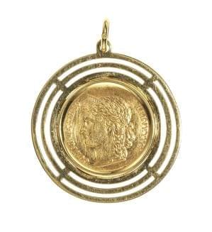 4166. Médaille sertie d'un Vreneli daté de 1947 retenu par une chaîne...