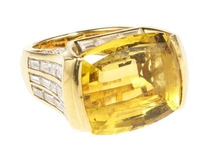 4139. Bague design ajourée sertie d'un saphir jaune taille émeraude (e...