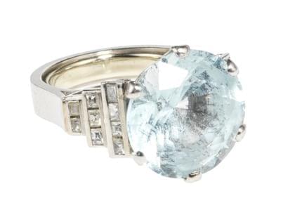 4156. Bague sertie d'une aigue-marine taille brillant (env. 8,5 ct) ép...