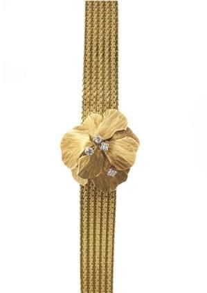 Aux feuilles en grenat vert et aux fleurs en améthyste rehaussée...
