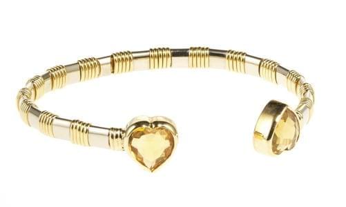 4161. Bracelet jonc ouvert serti de citrines taille cœur (env. 9x9,5x5...