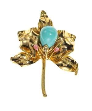 4103. Broche à motif de brin de muguet en pierres dures sculptées