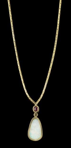 4192. Collier retenant une opale à fond blanc taille cabochon poire (e...