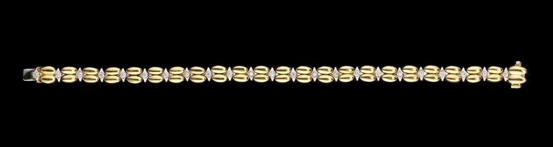 4200. Bracelet à maille grain de riz alternée de diamants (0,9 ct)
