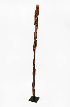Bois à patine brune et fibres végétales, H 106 cm