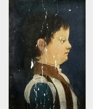 Portrait d'un jeune garcon de profil, huile sur panneau, 21x15 c...