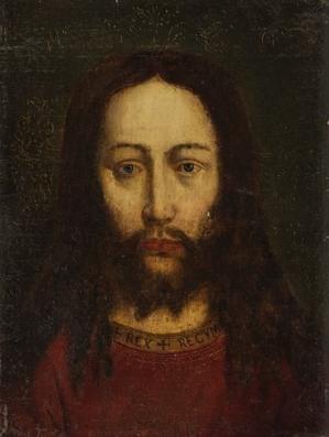 Buste du Christ aux trois quarts, huile sur toile marouflée sur...