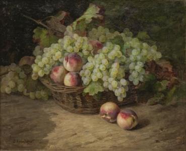 Nature morte au panier de fruits, huile sur toile, signée et dat...