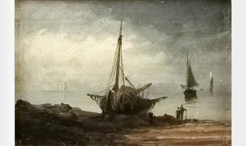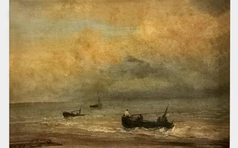 Pêcheurs, huile sur toile marouflée sur carton, 32x39 cm