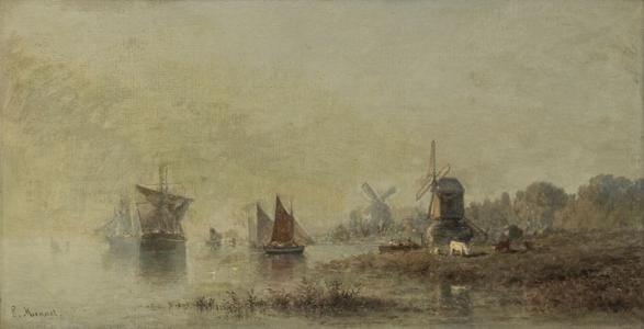 Canal dans la campagne hollandaise, huile sur toile, signée, 17x...