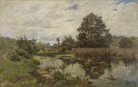 Paysage, huile sur toile, 23x31 cm. Provenance: château de Russi...