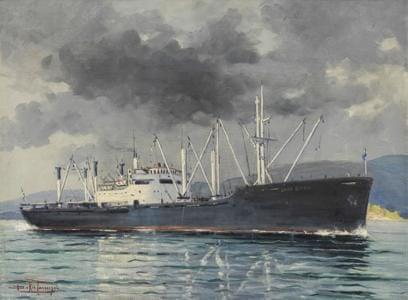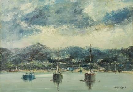 Le Baleinier, huile sur toile, signée, datée au dos 78-79, 60x73...