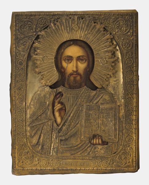 Icône, tempera sur panneau et oklade en laiton, 22x18 cm