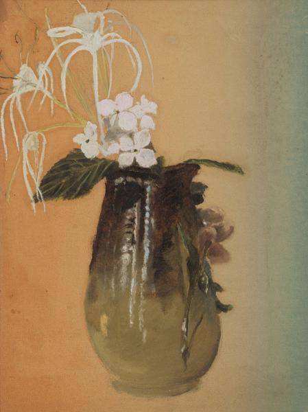Bouquet de fleurs japonisant, huile sur carton, 23x17 cm. Proven...
