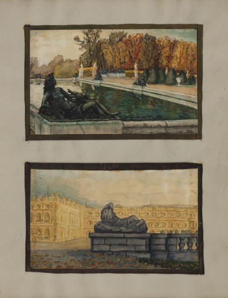 Vues du château et du parc de Versailles, deux aquarelles sur pa...